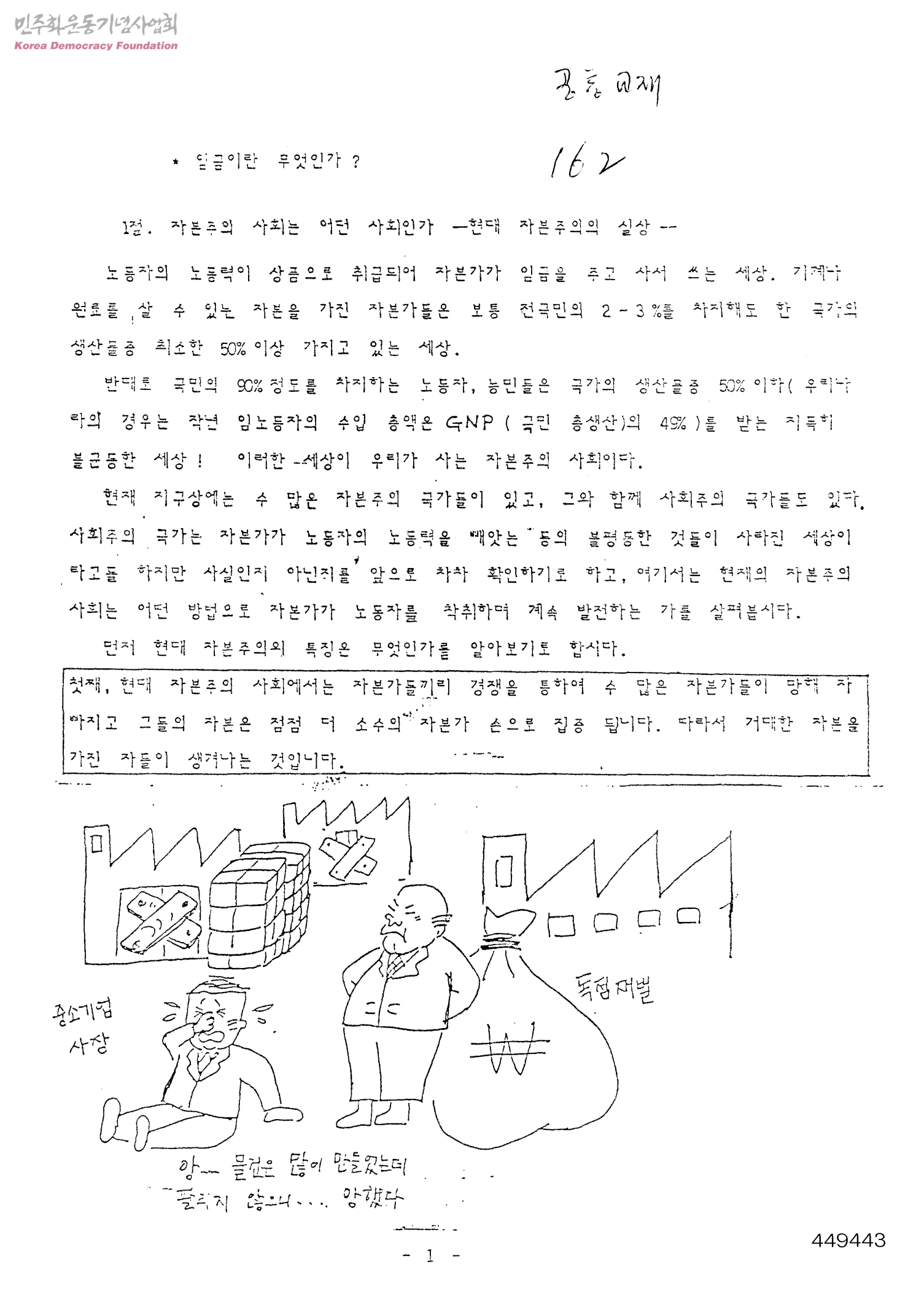 - 자본주의 사회는 어떤 사회인가-현대 자본주의의 실상,임금이란 무엇인가?,이윤은 어디에서 생기나?,임금인상은 정당한 것인가?,우리들의 투쟁목표