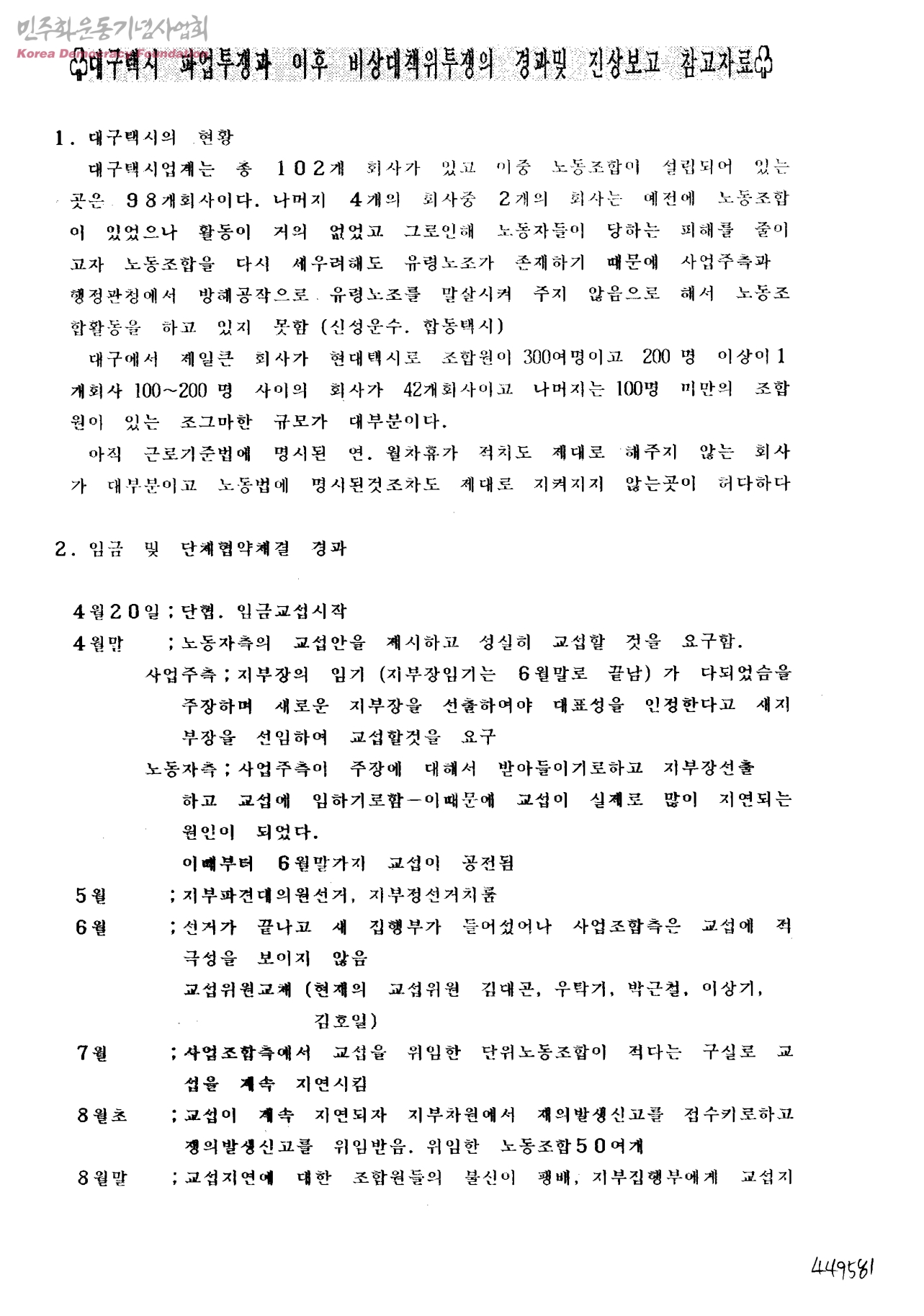 대구택시 파업투쟁과 이후 비상대책위투쟁의 경과및 진상보고 참고자료