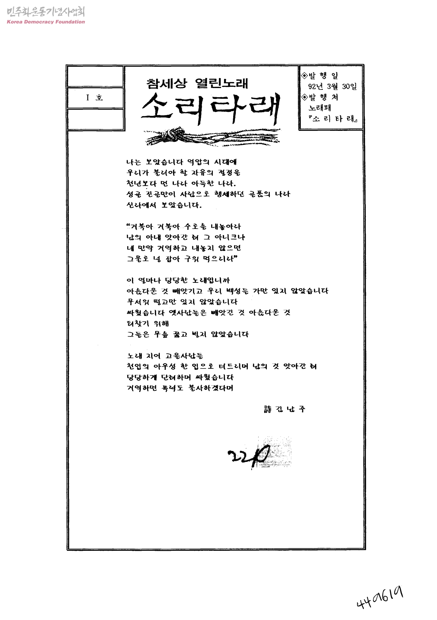 참세상 열린노래 소리타래 I호