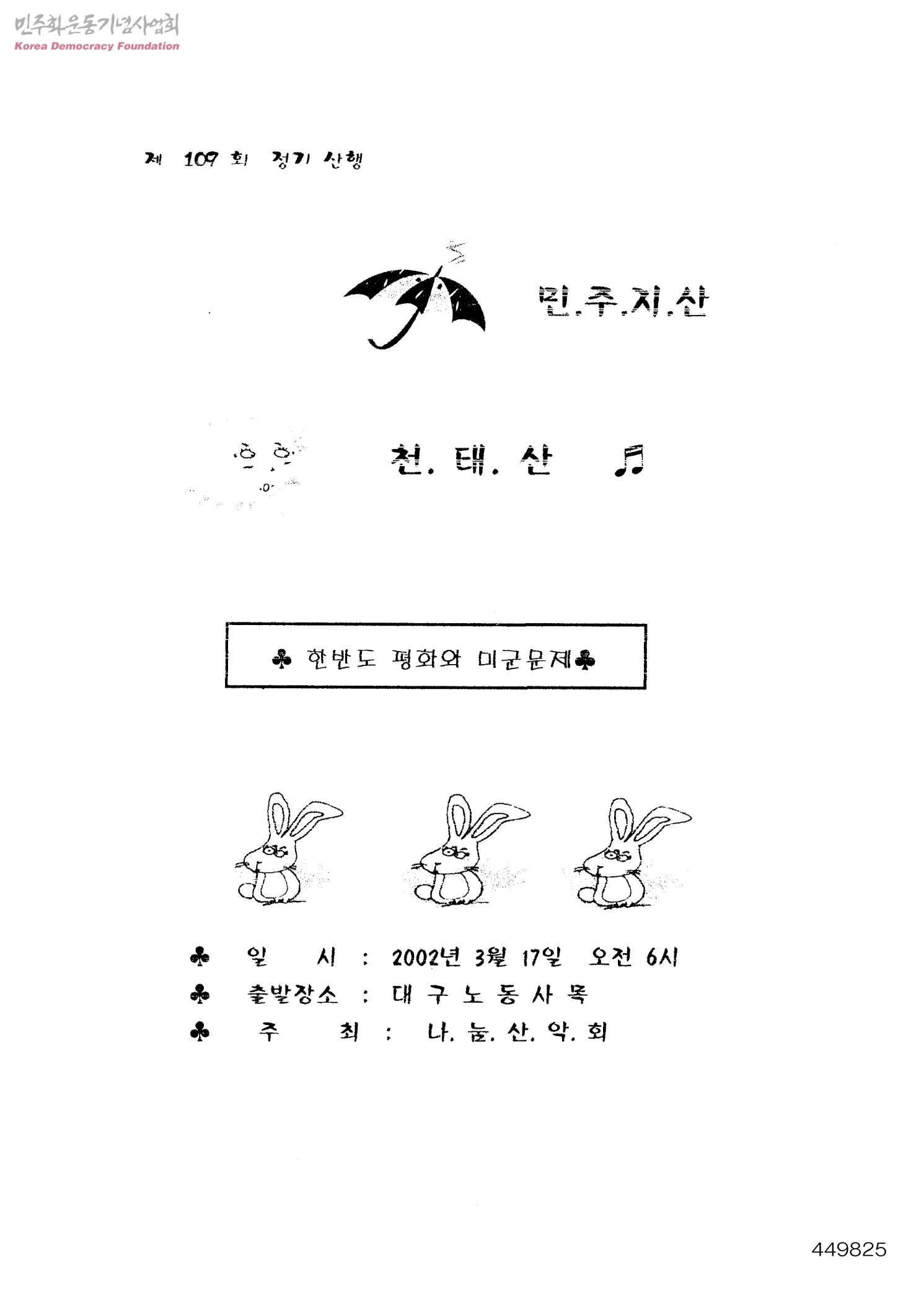제109회 정기 산행-민주지산,천태산 한반도 평화와 미군문제