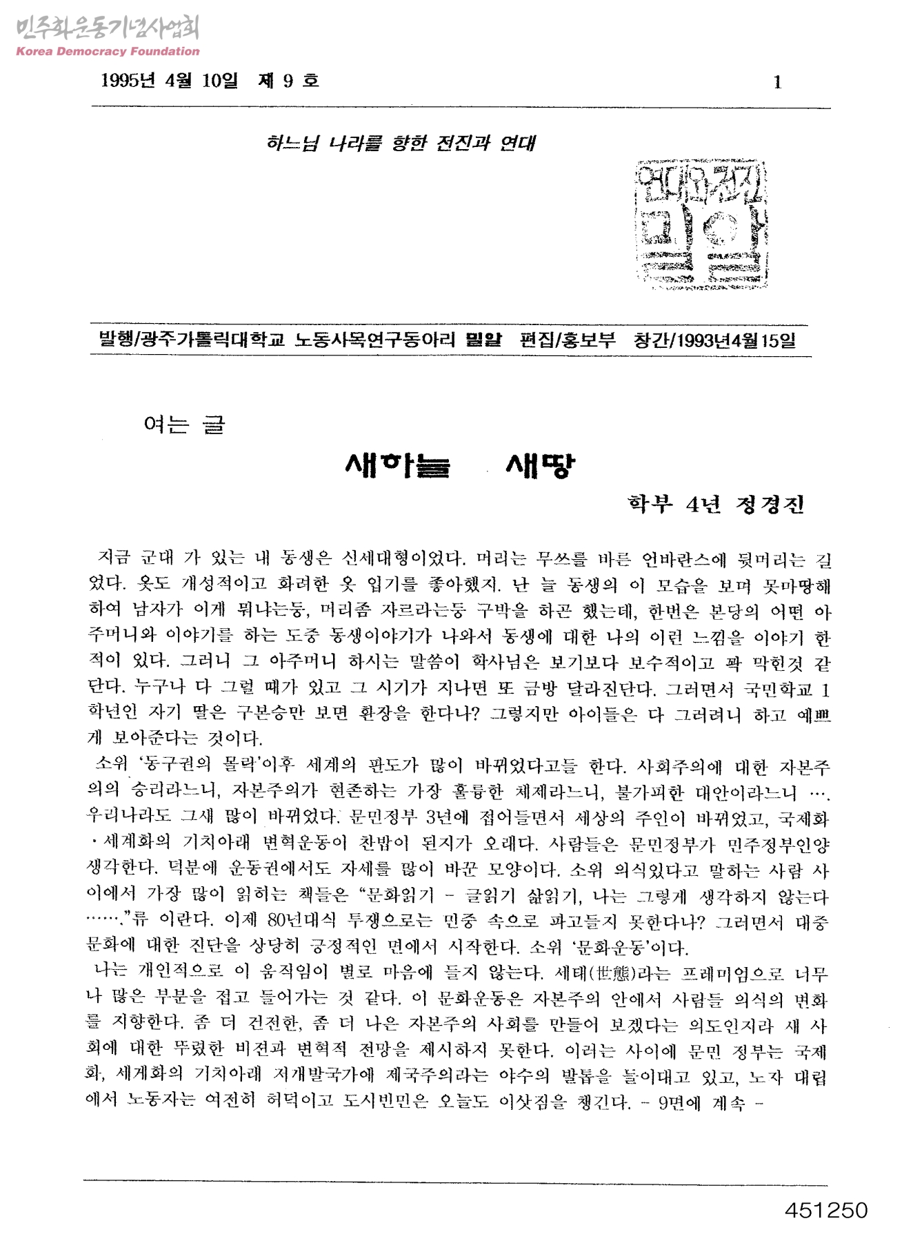 하느님 나라를 향한 전진과 연대 제9호