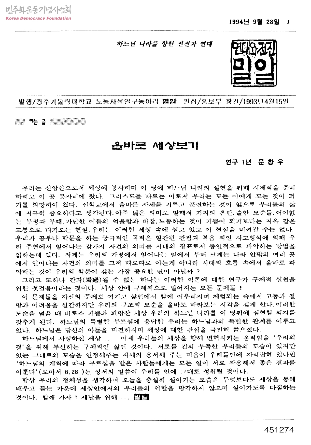 - 광주가톨릭대학교 노동사목연구동아리밀알