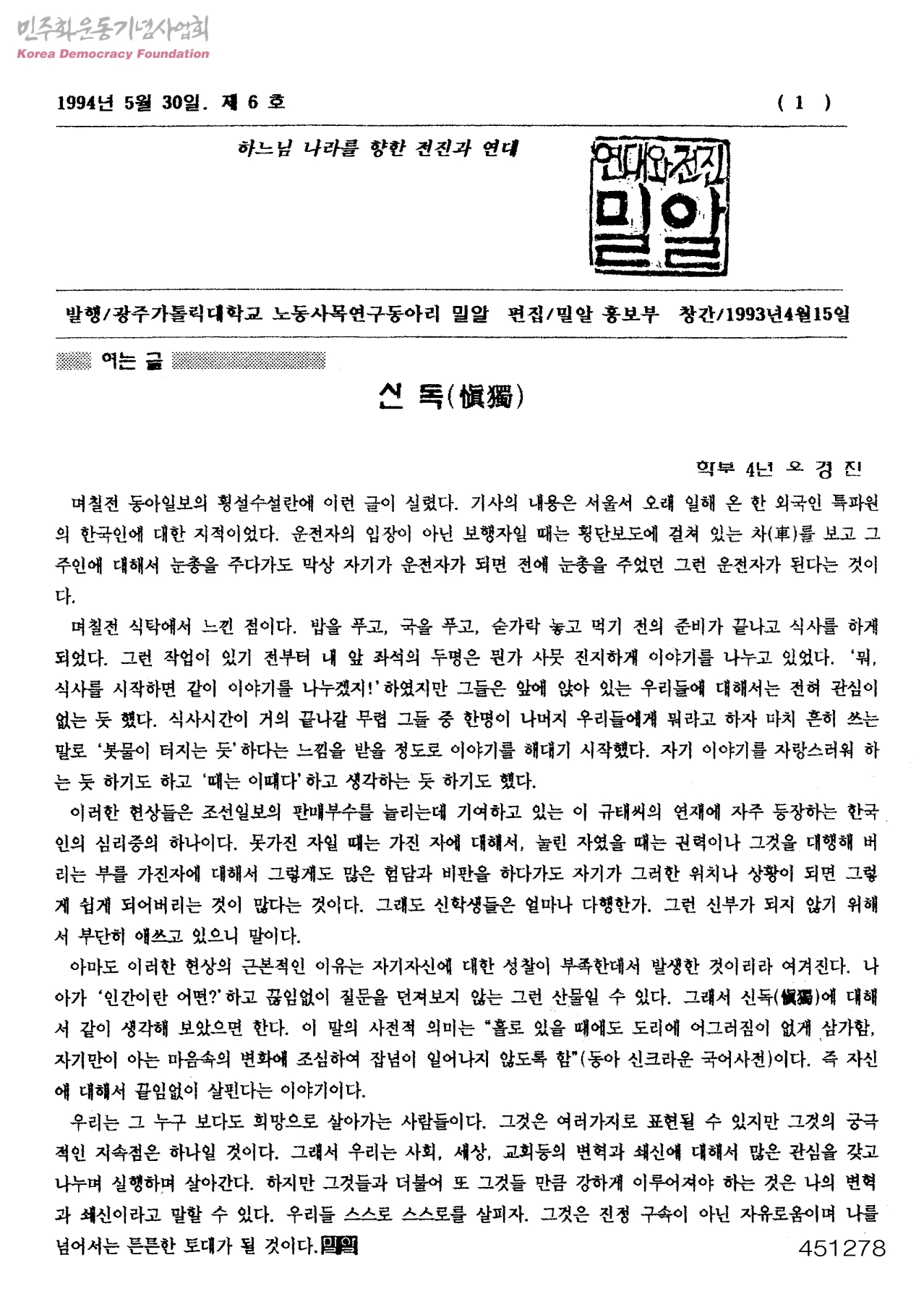 - 광주가톨릭대학교 노동사목연구동아리밀알