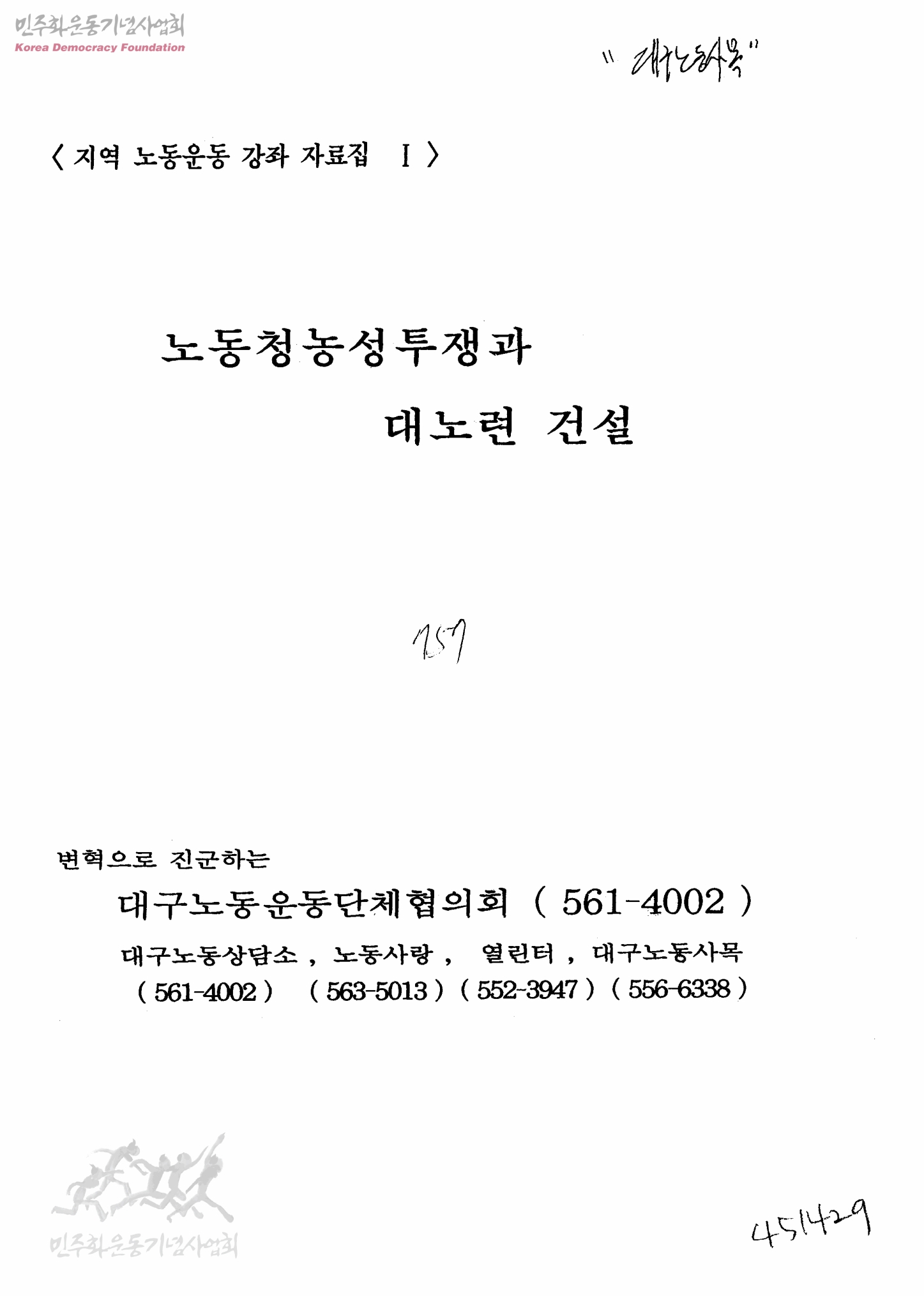 <지역 노동운동 강좌 자료집I> 노동청농성투쟁과 대노련 건설