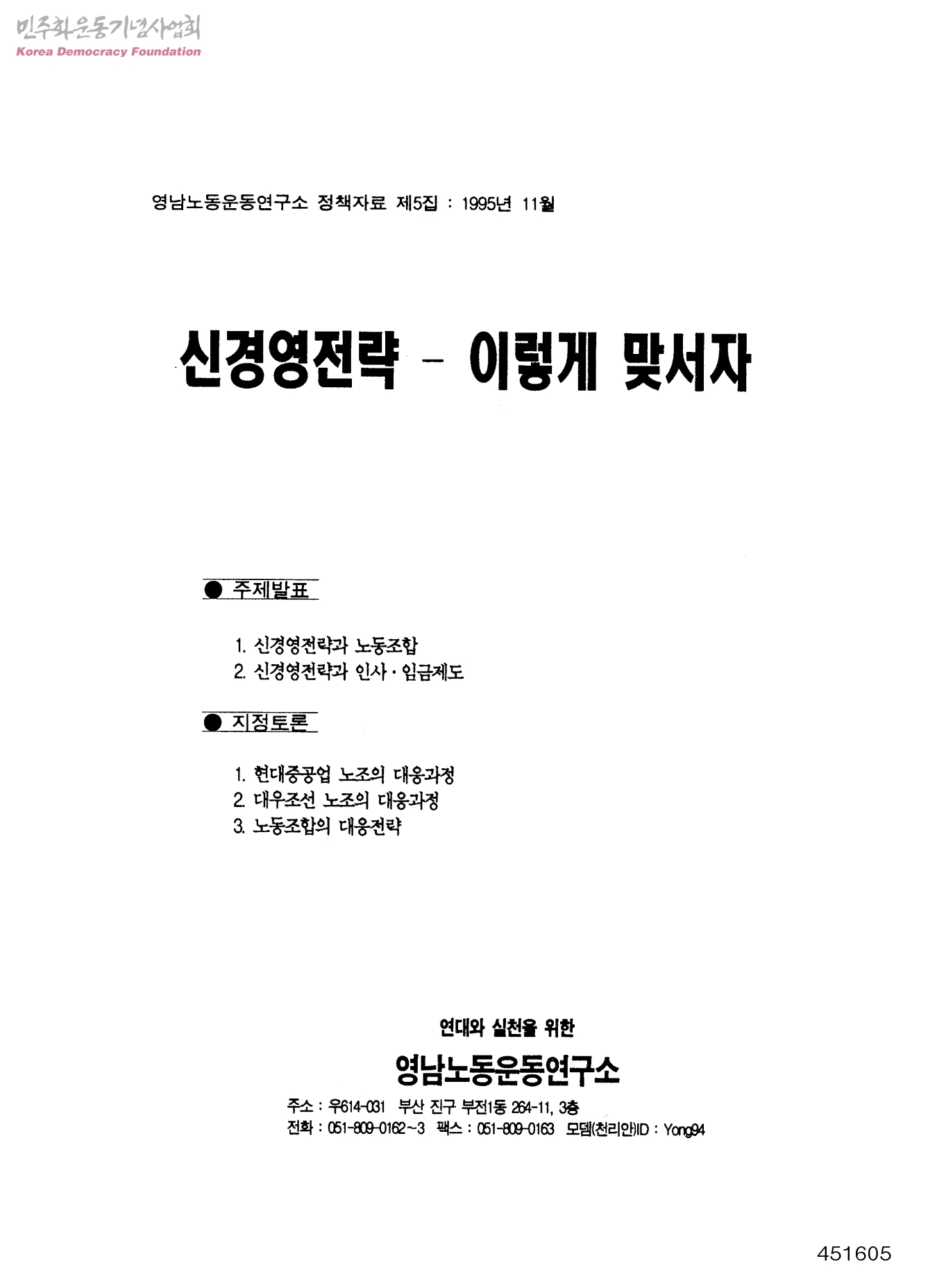 영남노동운동연구소 정책자료 제5집:1995년 11월 신경영전략-이렇게 맞서자