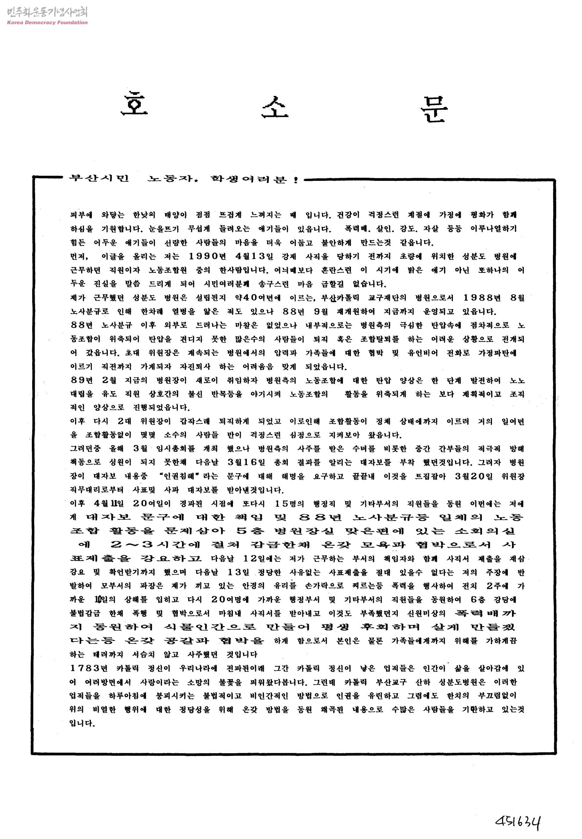 호소문[성분도병원 폭력및 인권유린관련]