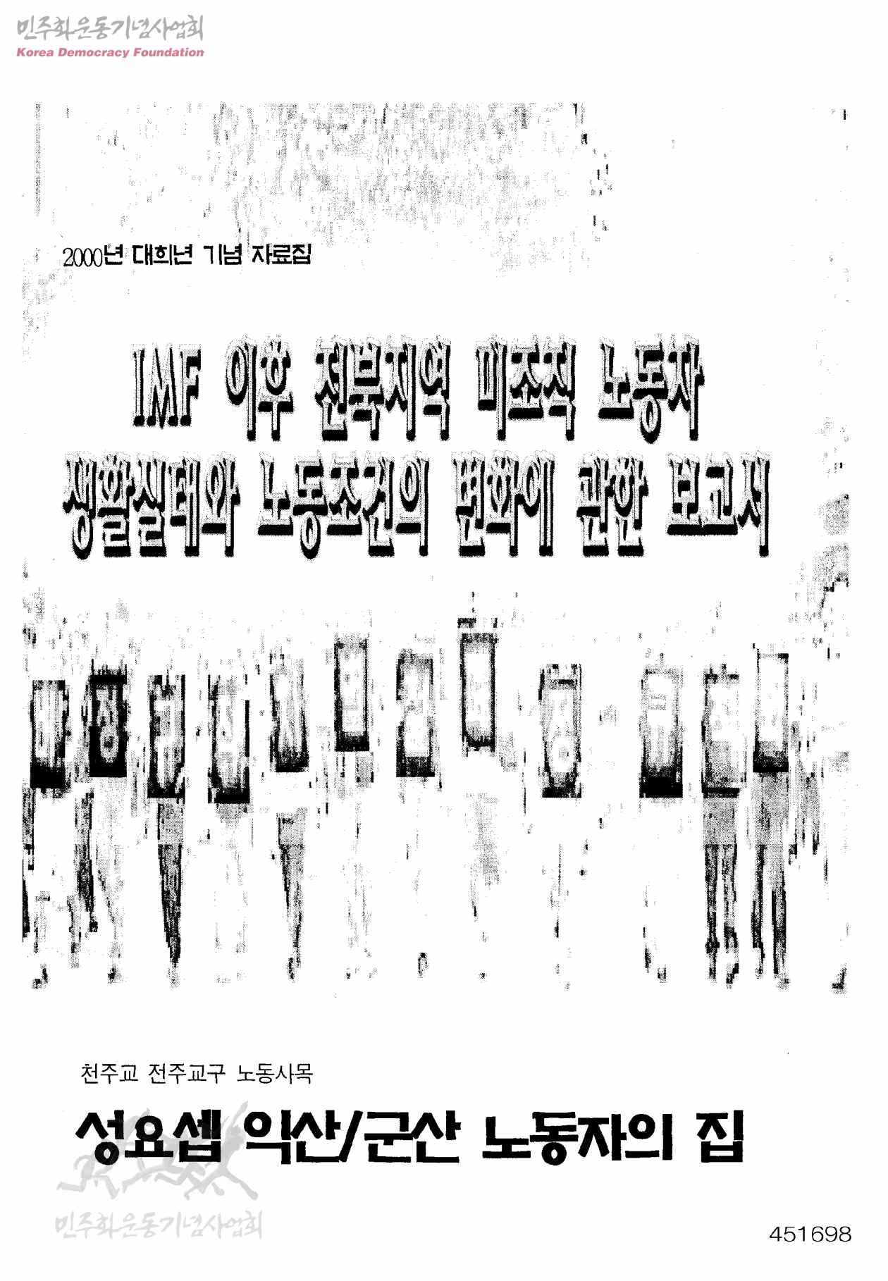 2000년 대희년 기념 자료집-IMF 이후 전북지역 미조직 노동자 생활실태와 노동조건의 변화에 관한 보고서