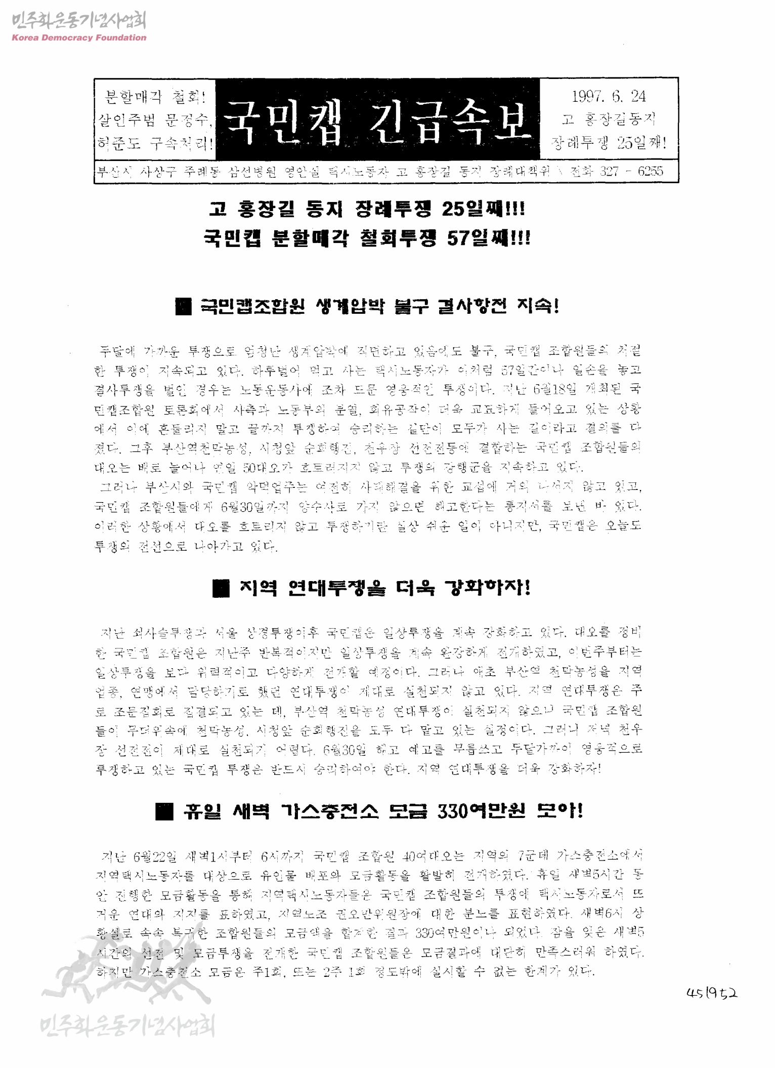 - 생산자 및 기증자가 ‘박용수’인 사진의 사용은 구매신청을 클릭하여 직접 사진 구매 신청을 하실 수 있습니다. 생산자 및 기증자가 ‘경향신문사’인 사진의 사용은 경향신문사 담당자(02-3701-1635)를 통해 구매하실 수 있습니다. 그 외의 생산자 및 기증자는 민주화운동기념사업회 사료관 담당자( h_jungwon@kdemo.or.kr / 031-361-9586 )에 문의바랍니다.