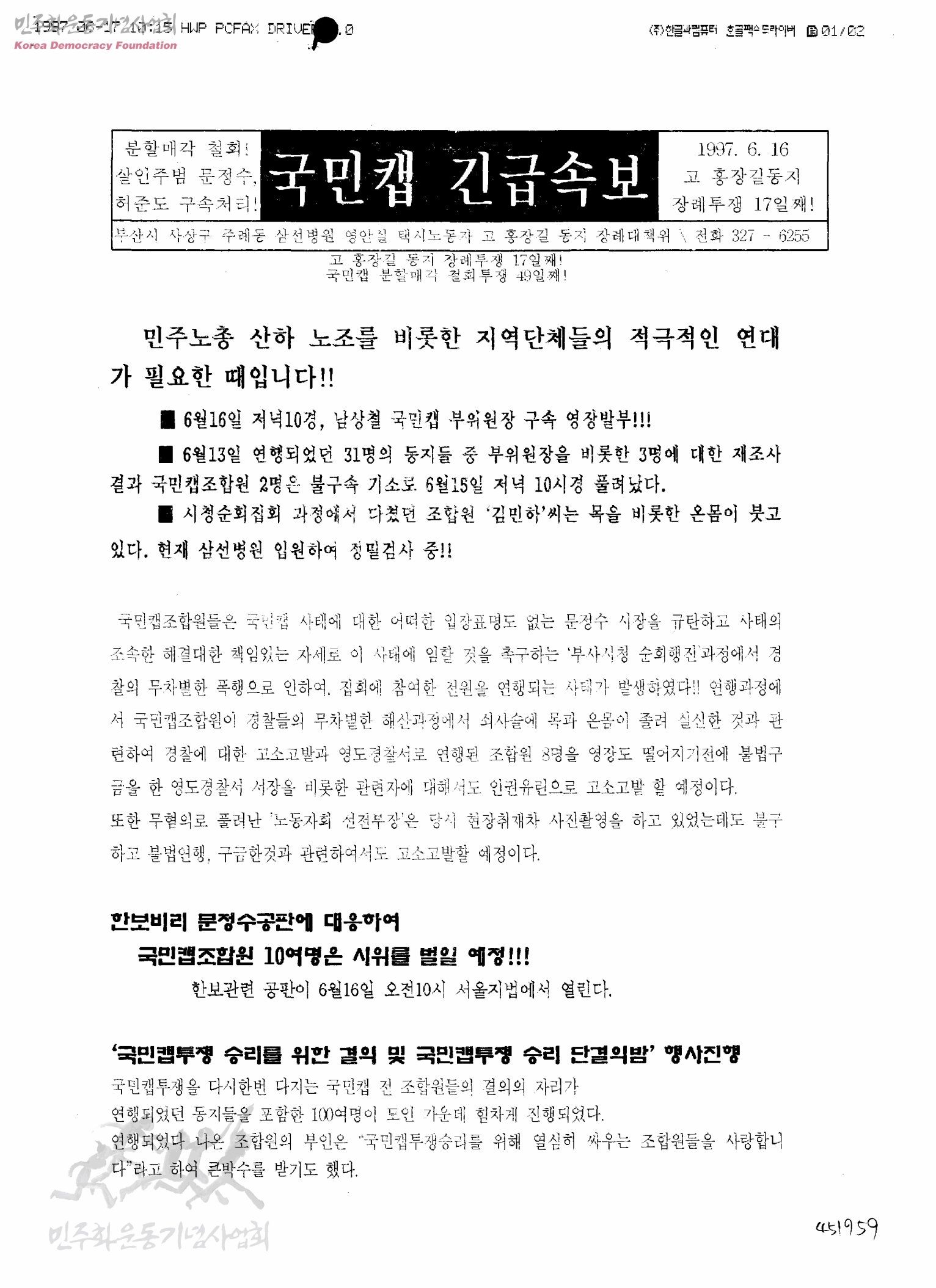 - 생산자 및 기증자가 ‘박용수’인 사진의 사용은 구매신청을 클릭하여 직접 사진 구매 신청을 하실 수 있습니다. 생산자 및 기증자가 ‘경향신문사’인 사진의 사용은 경향신문사 담당자(02-3701-1635)를 통해 구매하실 수 있습니다. 그 외의 생산자 및 기증자는 민주화운동기념사업회 사료관 담당자( hyunchaek@kdemo.or.kr / 02-6440-8961 )에 문의바랍니다.