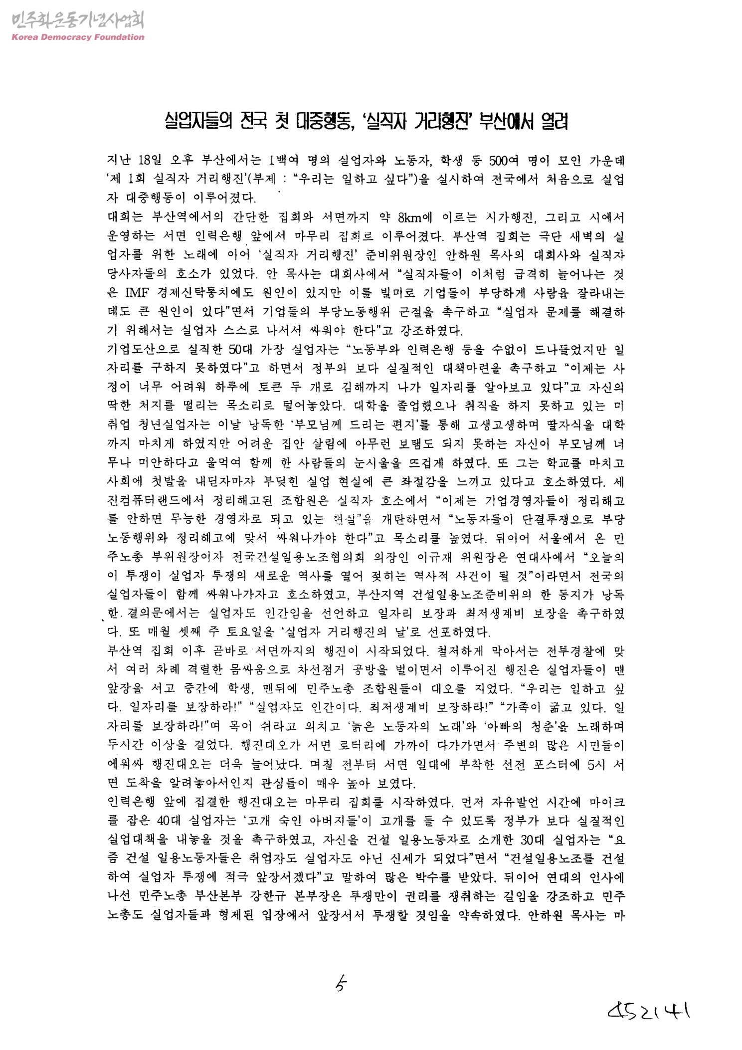 실업자들의 전국 첫 대중행동,'실직자 거리행진'부산에서 열려