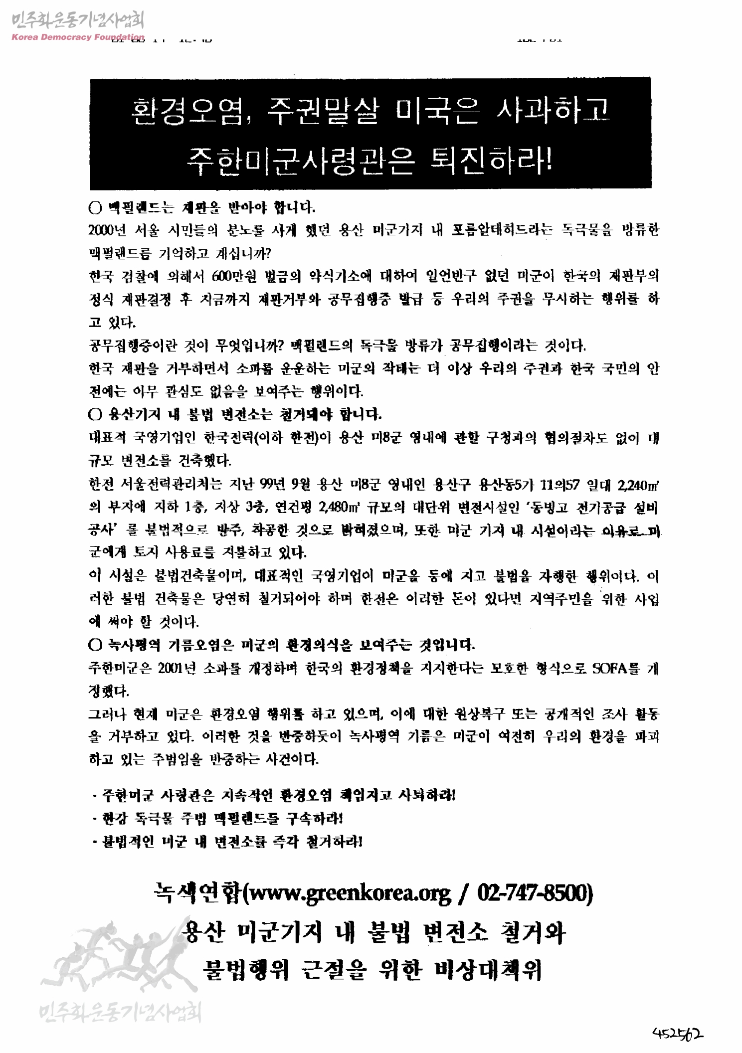 - 녹색연합, 용산미군기지내불법변전소철거와불법행위근절을위한비상대책위원회
