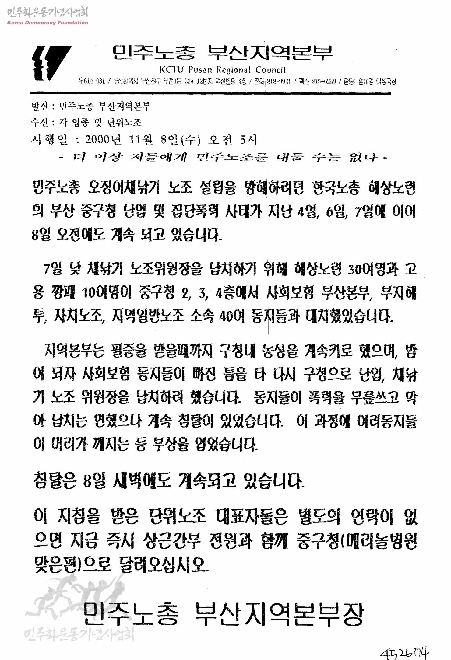 더 이상 저들에게 민주노조를 내둘 수는 없다[수신:각 업종 및 단위노조, 발신:민주노총 부산지역본부]