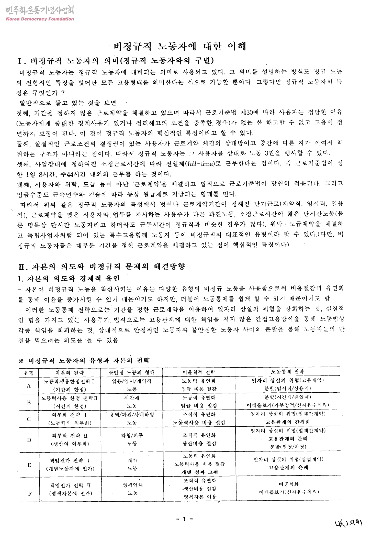 - 비정규직 노동자의 의미(정규직 노동자와의 구별),자본의 의도와 비정규직 문제의 해결방향,일용직/임시직/계약직 노동자, 파견/사내하청/용역 노동자