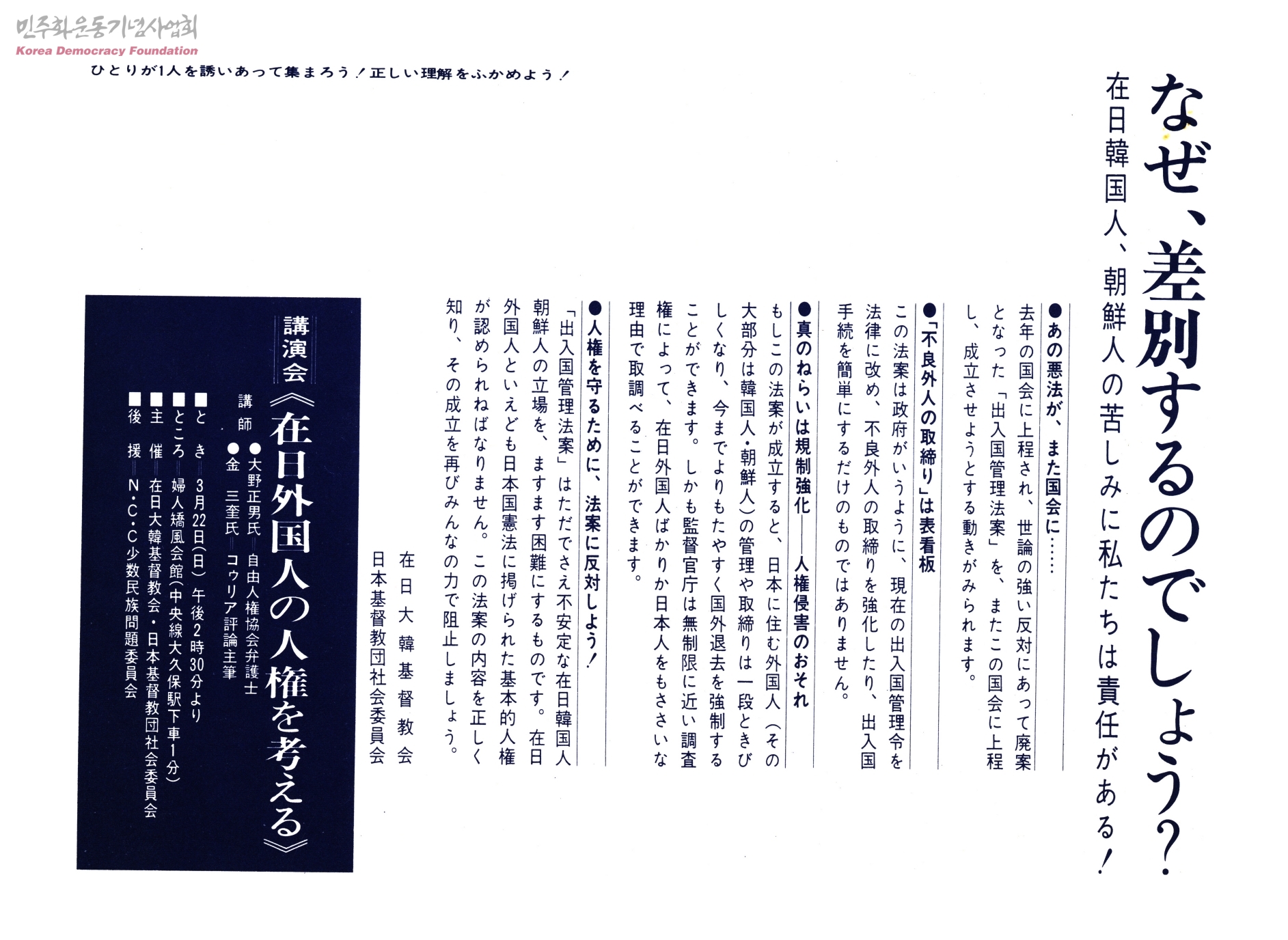 なぜ,差別するのでしょう?-在日韓國人,朝鮮人の苦しみに私たちは責任がある![재일한국인, 조선인 차별 관련]