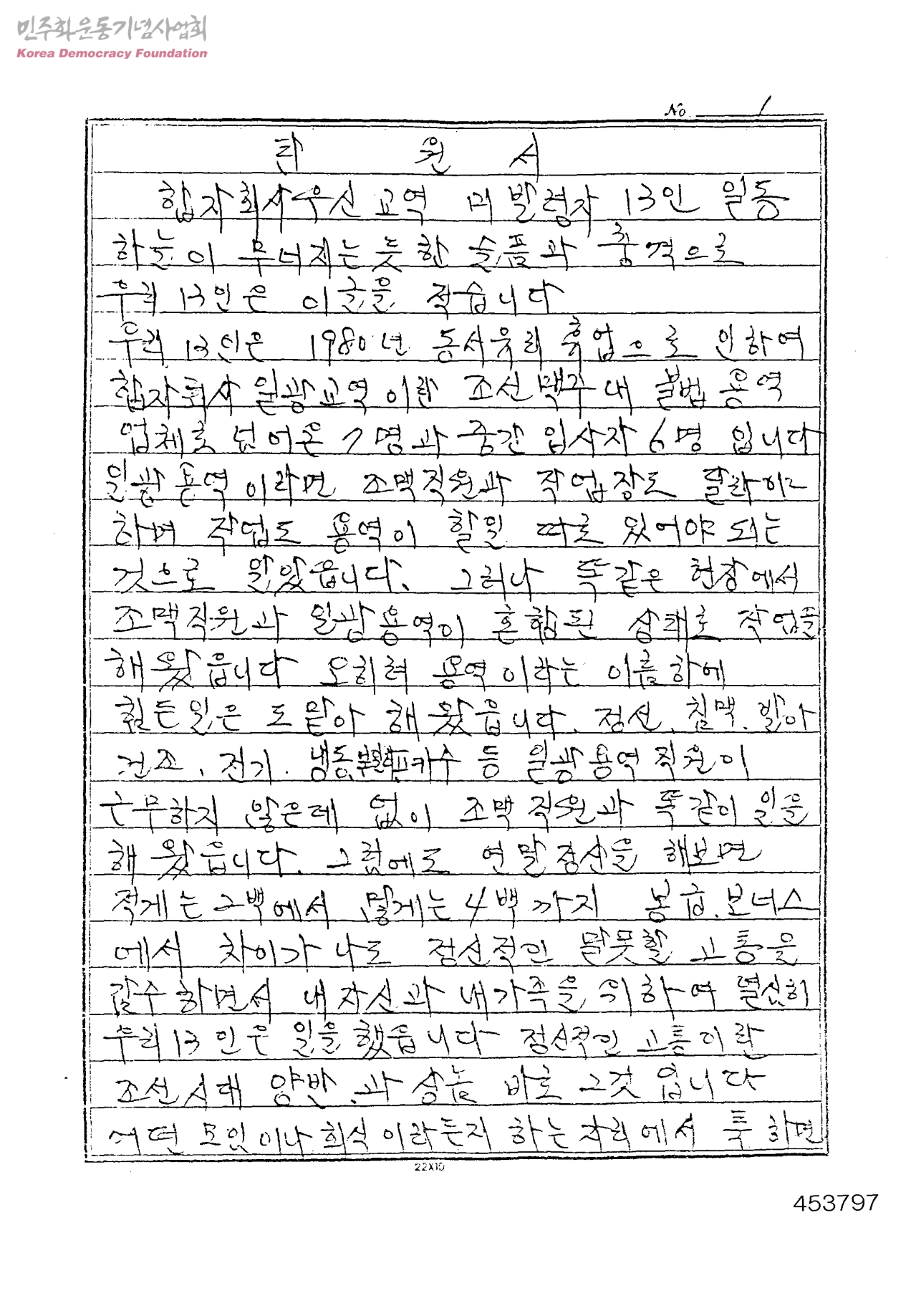 탄원서[조선맥주의 우신교역 근로자에 대한 부당행위 관련]
