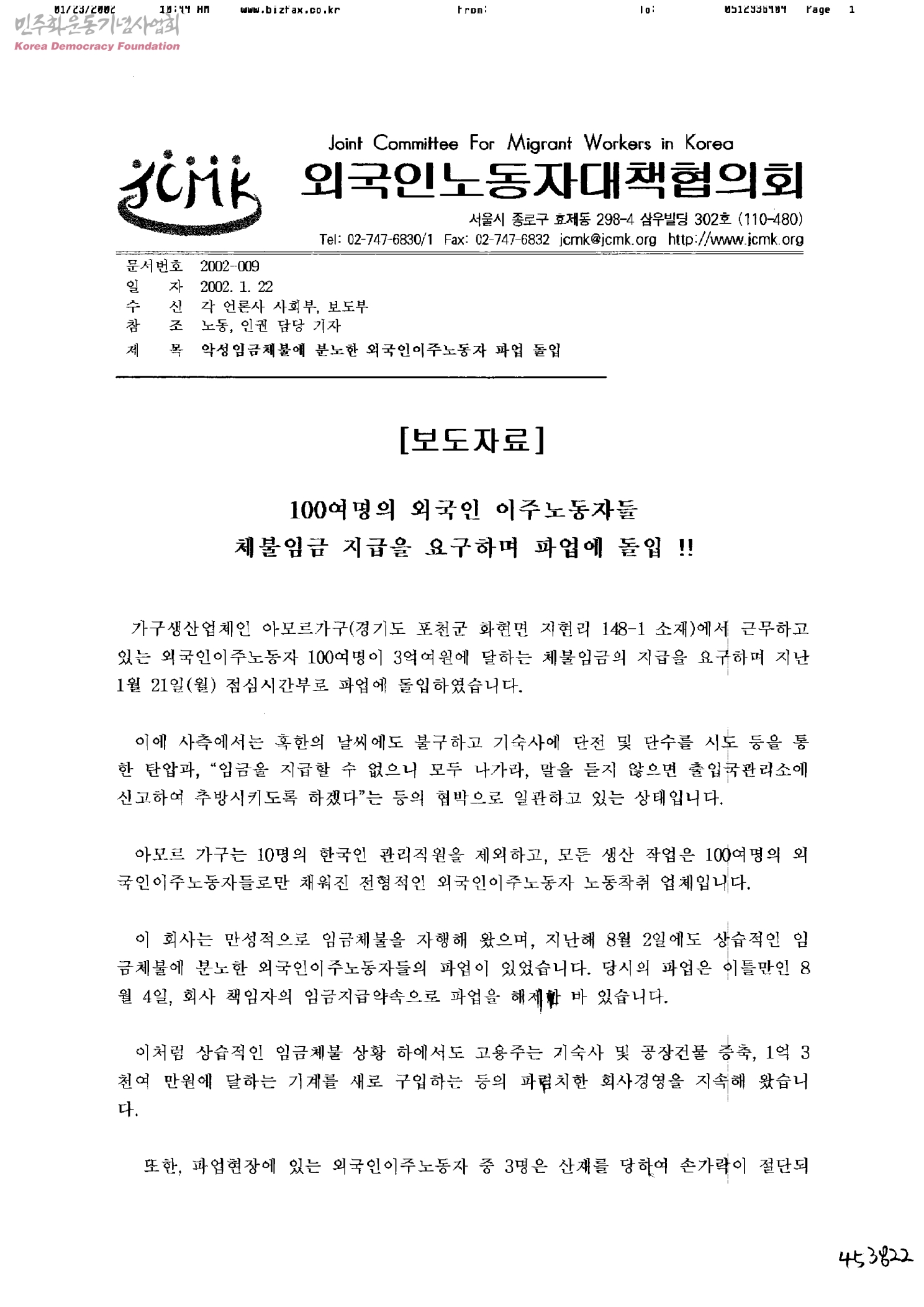 악성임금체불에 분노한 외국인이주노동자 파업 돌입[수신:각 언론사 사회부,보도부]