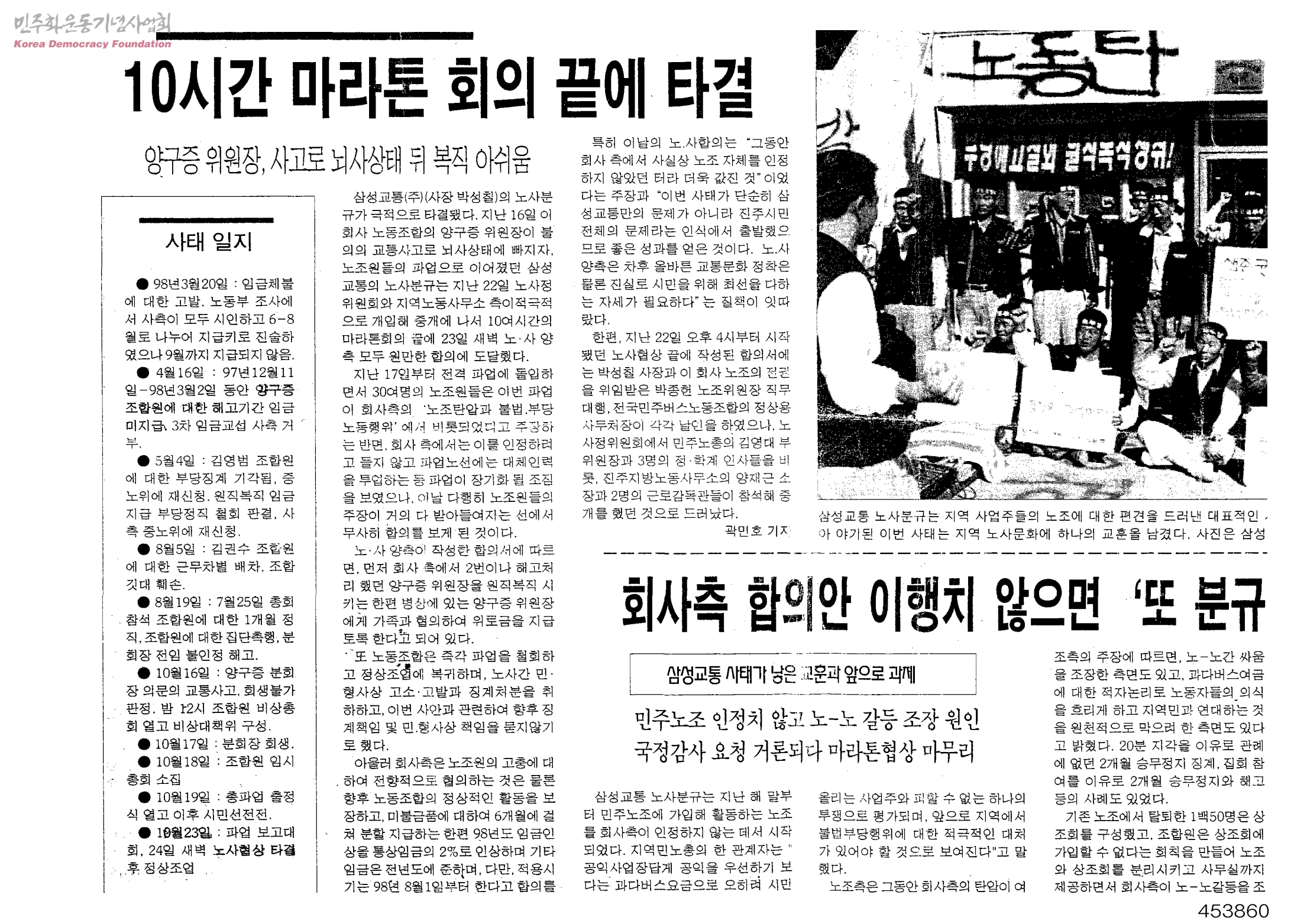 [신문스크랩]진주신문 제431호[삼성교통 노사분규 사태 전말-10시간 마라톤 회의 끝에 타결]