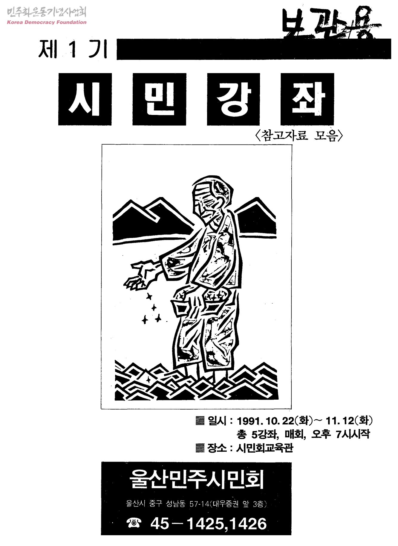 - 첨부문서:울산 민주 시민회 제1기 시민 강좌 일정 진행 보충계획(안),1991,울산민주시민회