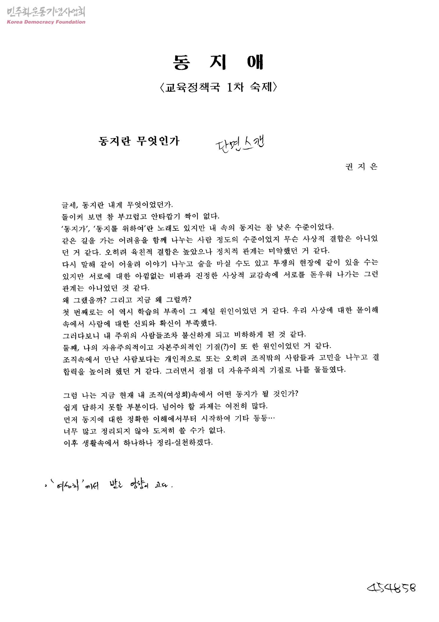 [교육정책국 1차 숙제-동지애 작문과 중간평가]
