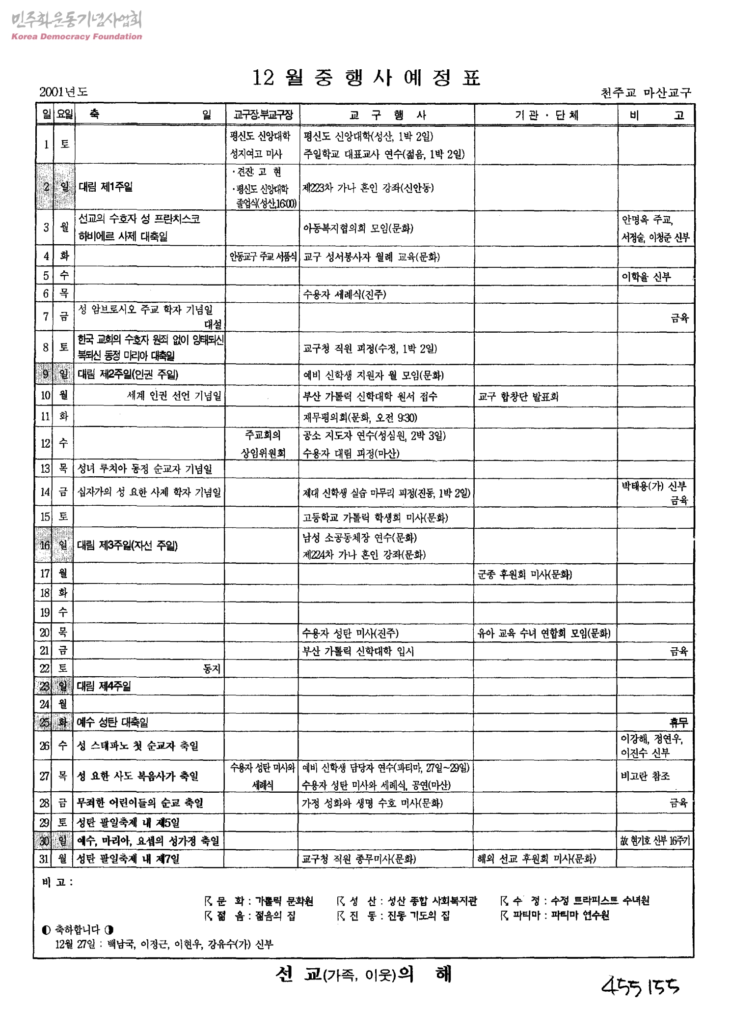 12월중 행사예정표
