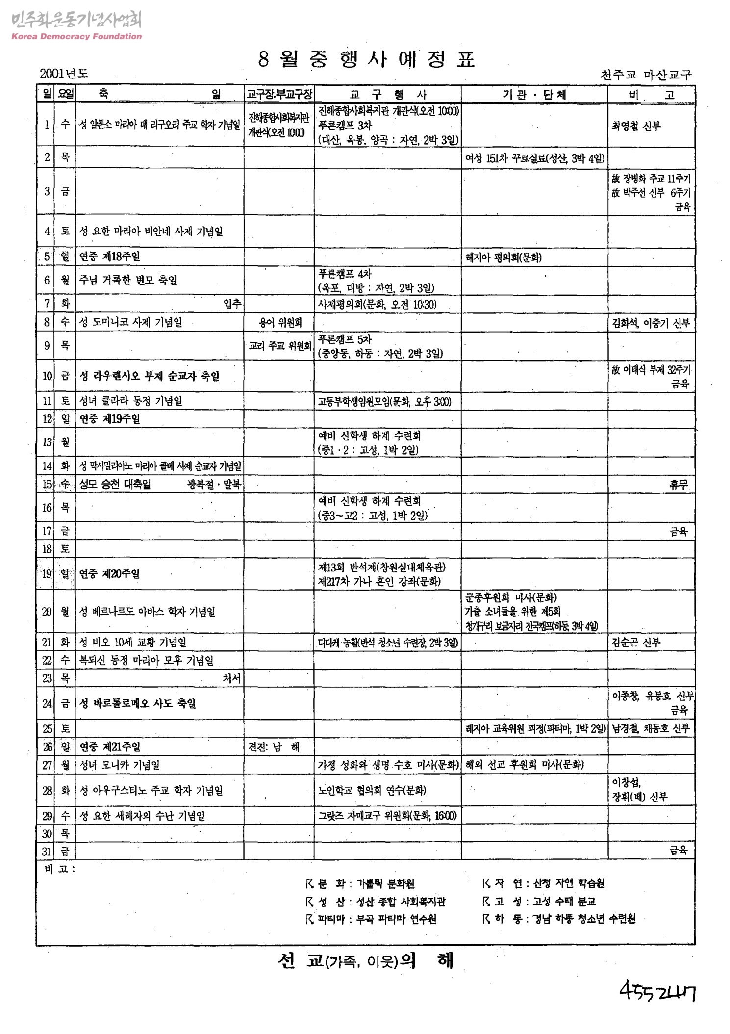 8월중 행사예정표
