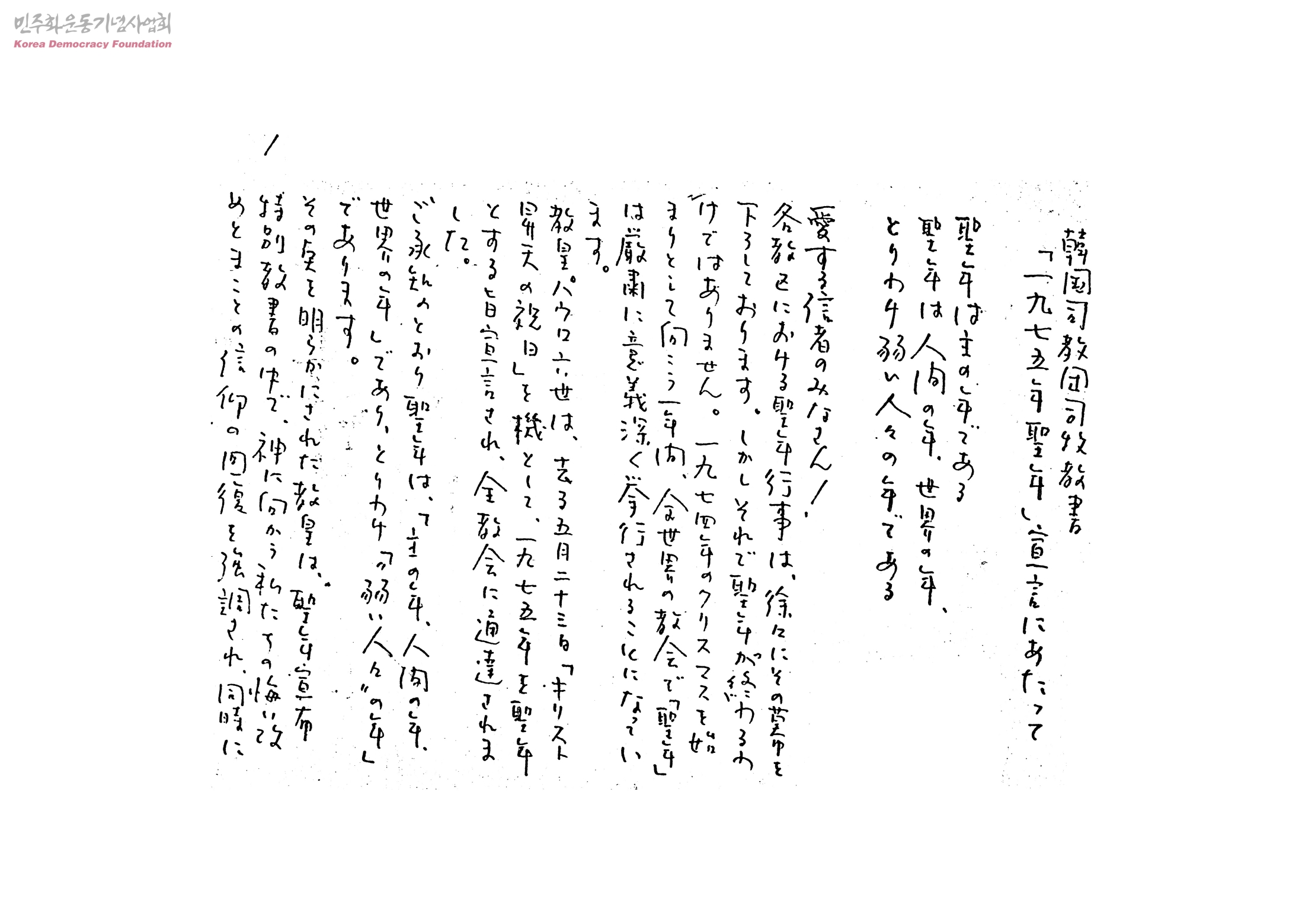 韓國司敎團司牧敎書 一九七五年聖年宣言にあたって[성년행사 관련]