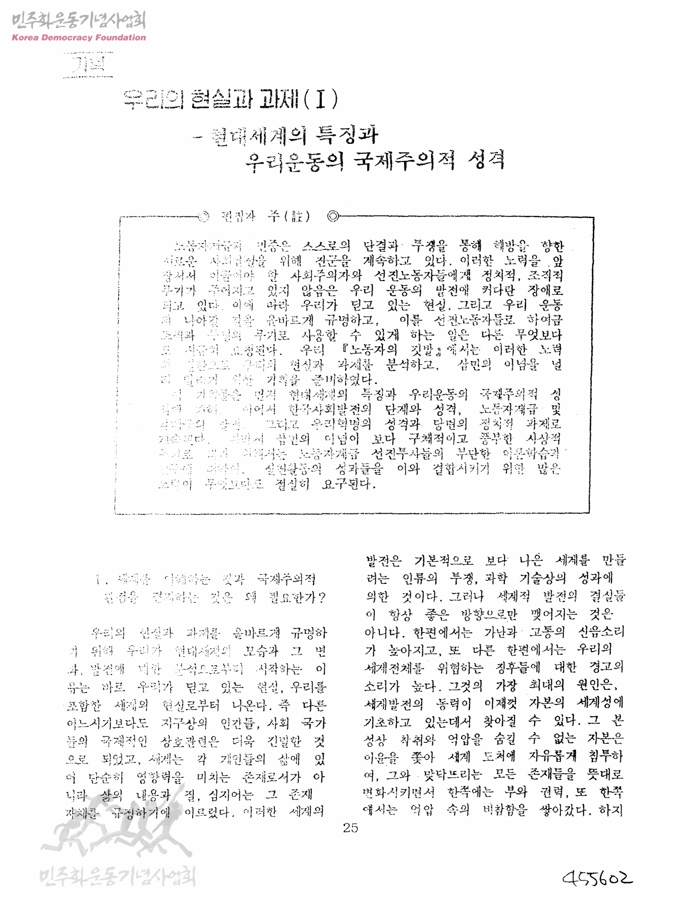 기획 우리의 현실과 과제(Ⅰ)-현대세계의 특징과 우리운동의 국제주의적 성격
