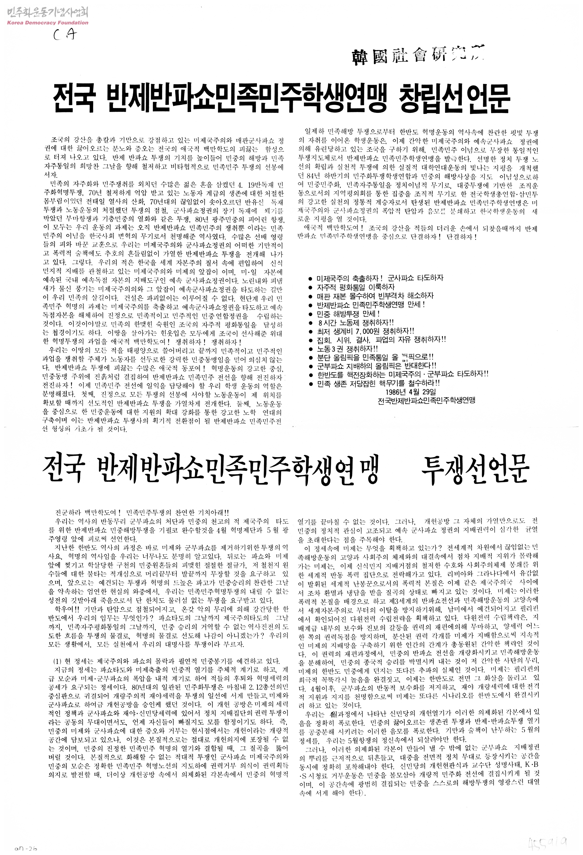 - 전국반제반파쇼민족민주학생연맹 창립선언문,전국 반제반파쇼민족민주학생연맹 투쟁선언문.전국 800만 노동자에게 드리는 글