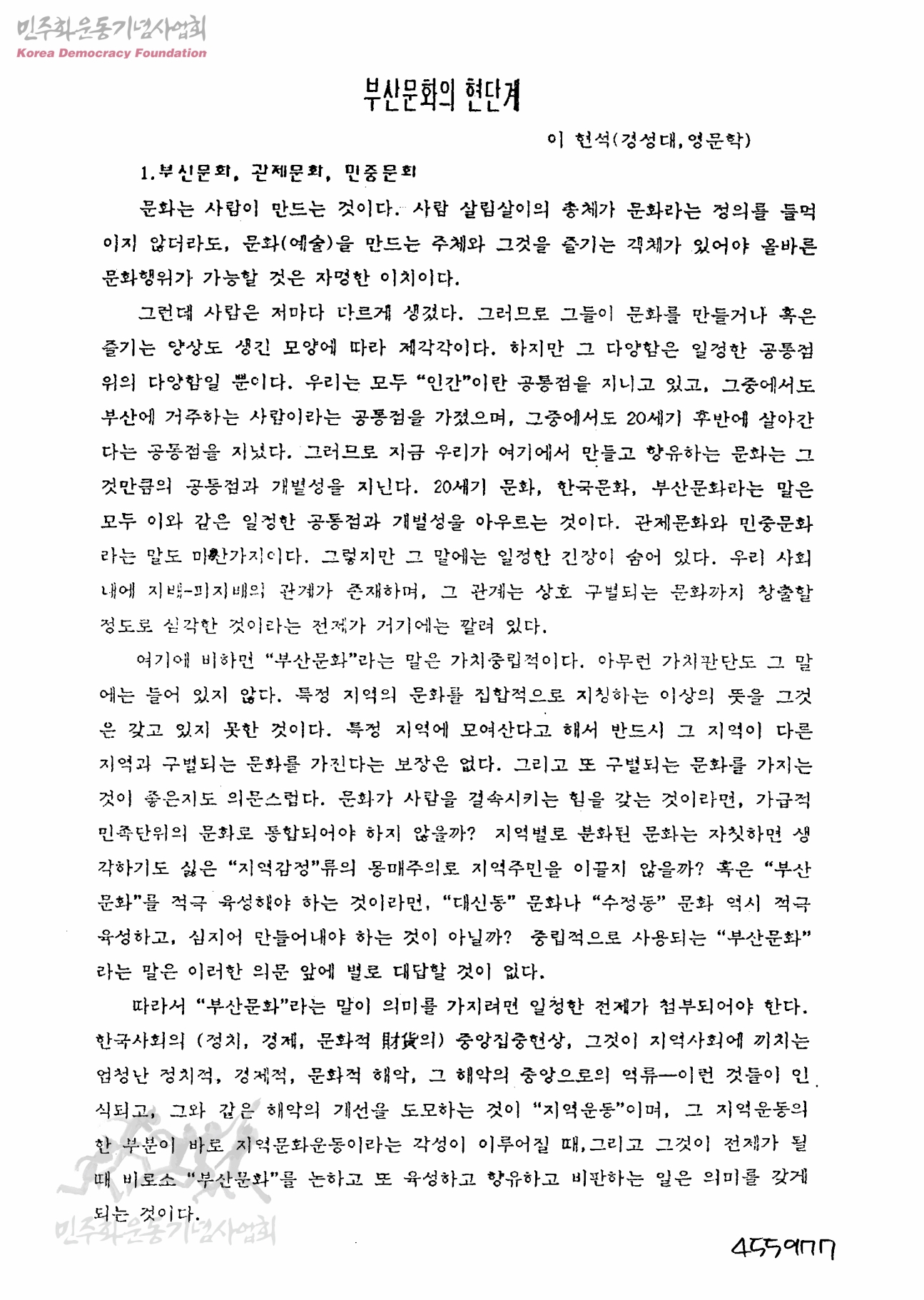 부산문화의 현단계