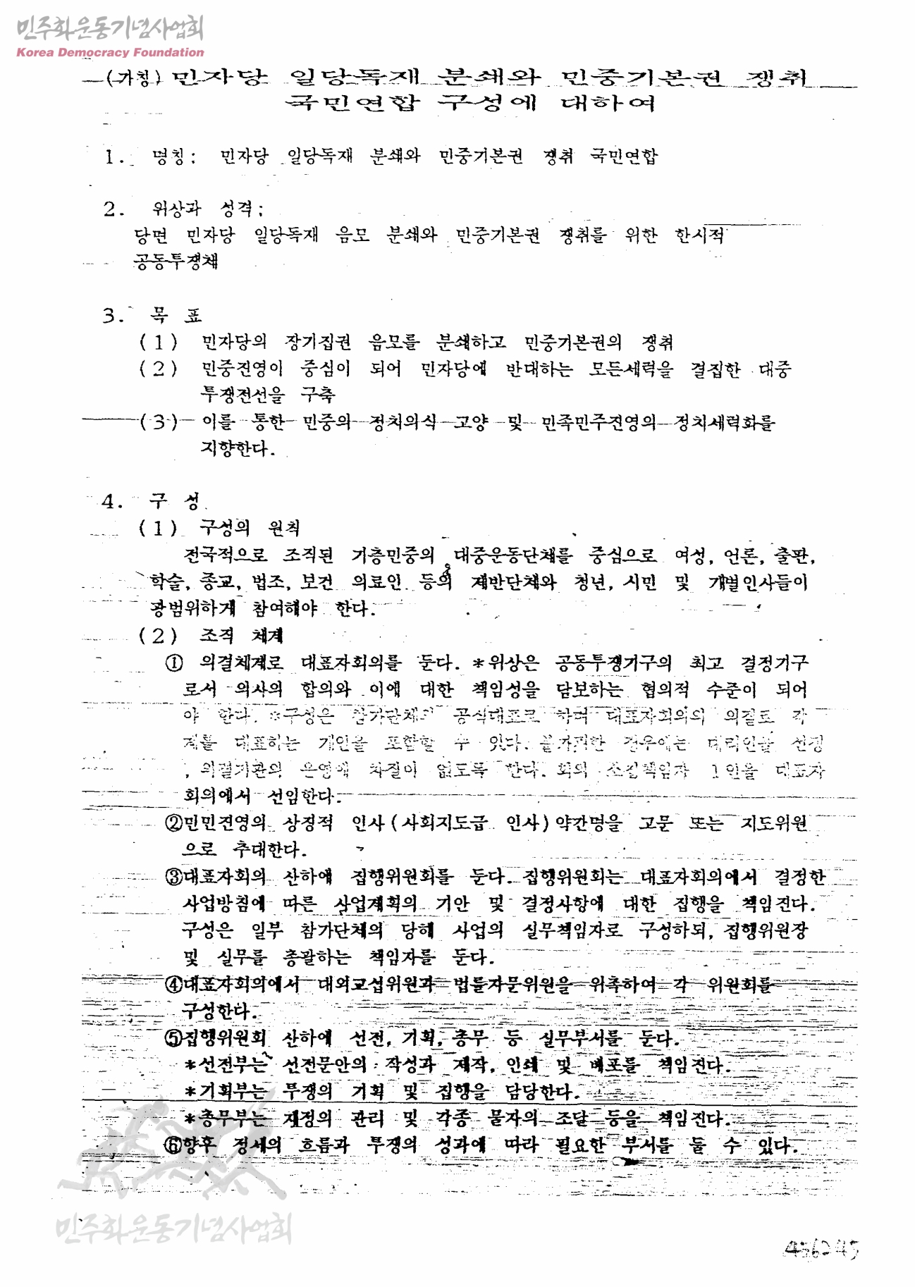 (가칭)민자당 일당독재 분쇄와 민중기본권 쟁취 국민연합 구성에 대하여