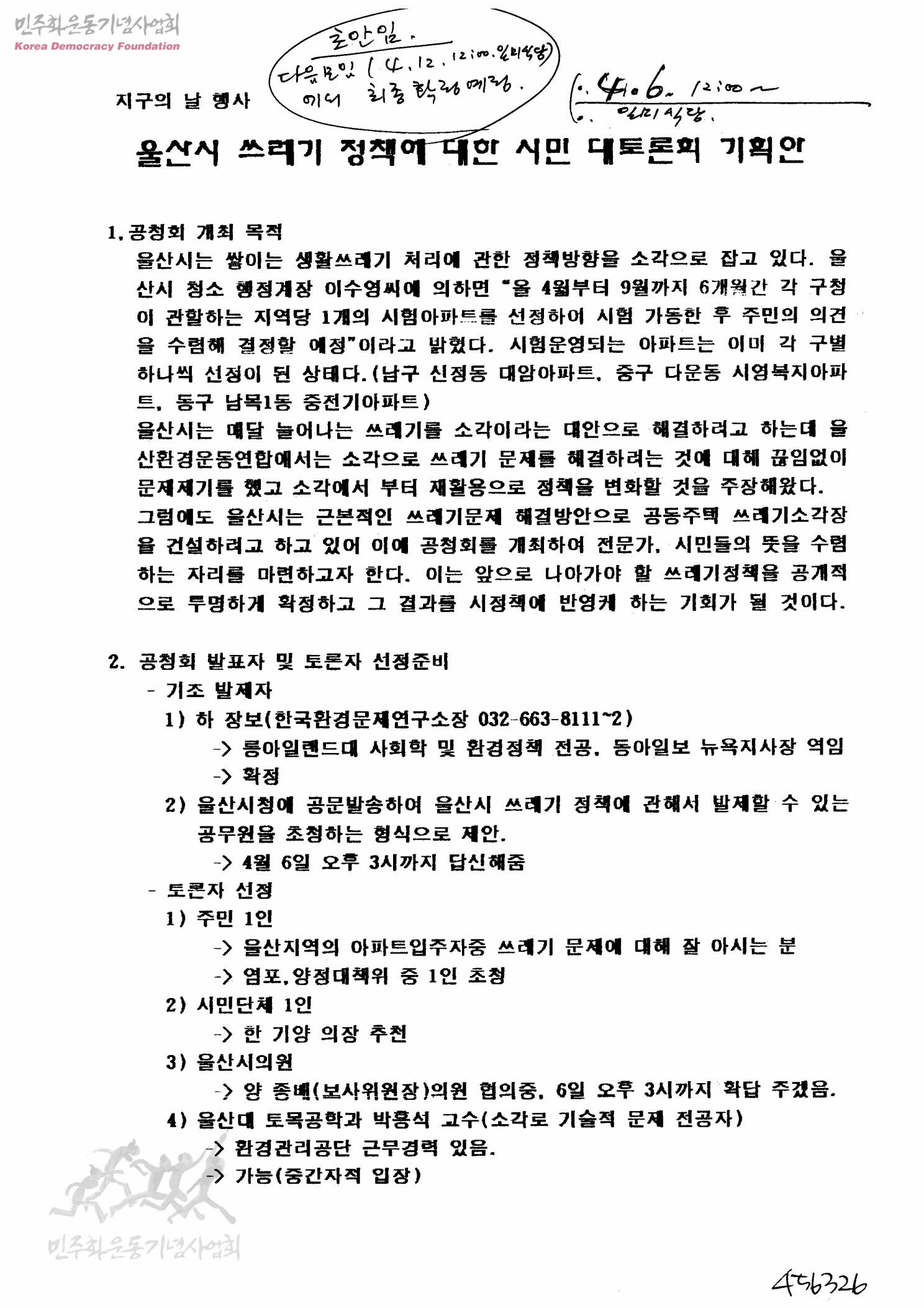 [지구의 날 행사 울산시 쓰레기 정책에 대한 시민 대토론회 기획안(초안)]