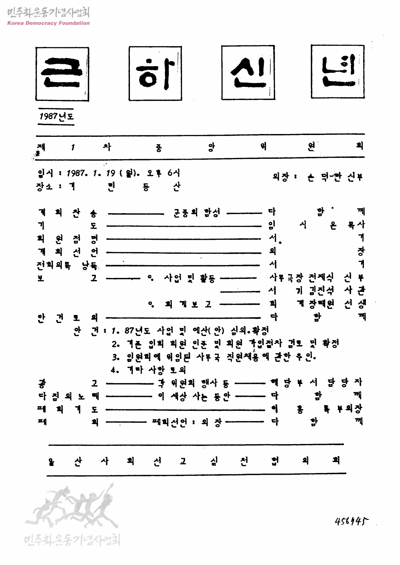 근하신년 1987년도 제1차 중앙위원회