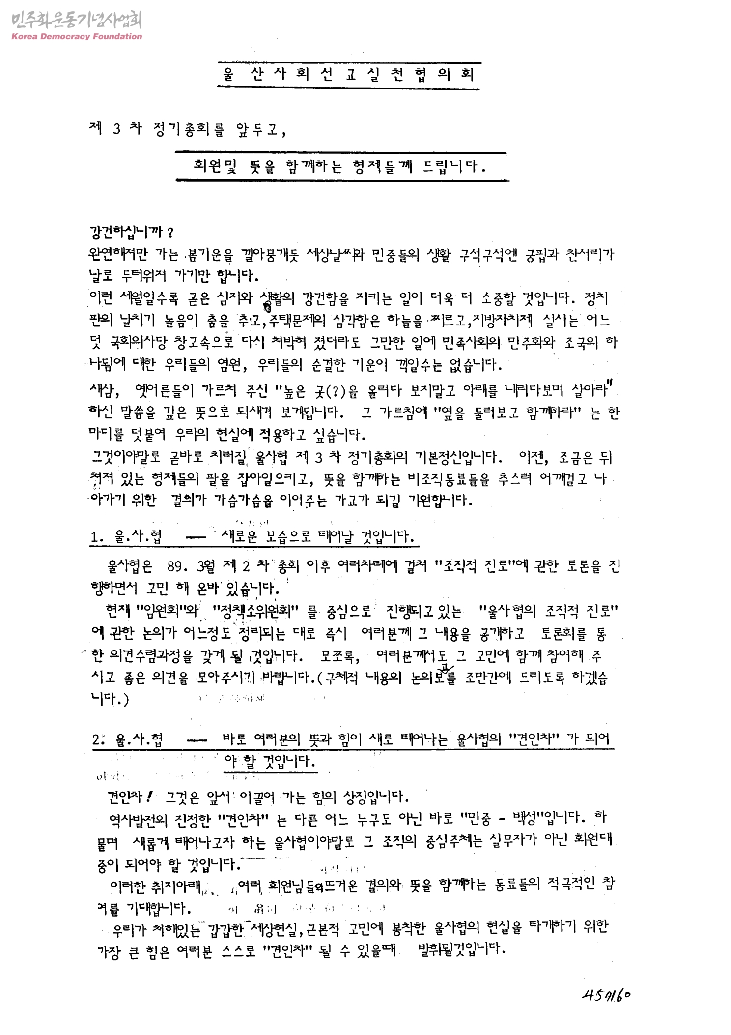 제3차 정기총회를 앞두고, 회원및 뜻을 함께하는 형제들께 드립니다