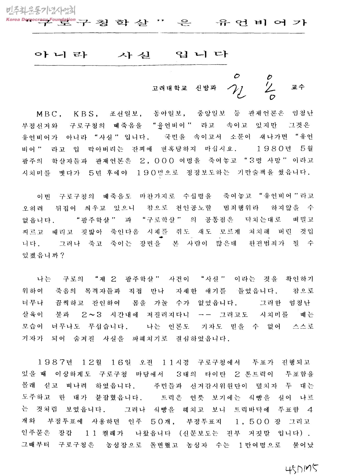 "구로구청학살"은 유언비어가 아니라 사실 입니다