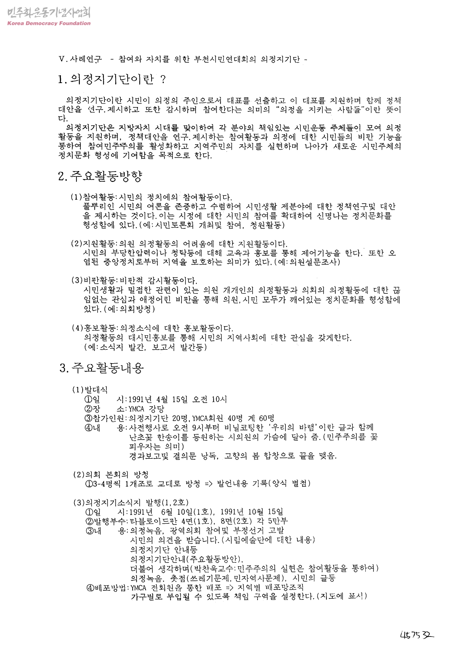 Ⅴ.사례연구-참여와 자치를 위한 부천시민연대회의 의정지기단