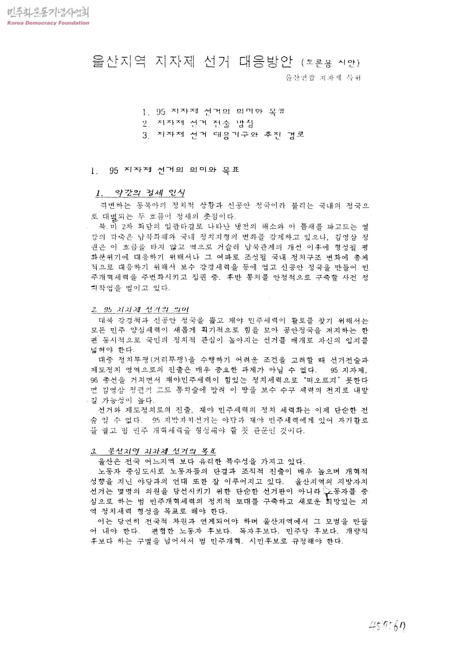 울산지역 지자제 선거 대응방안(토론용 시안)