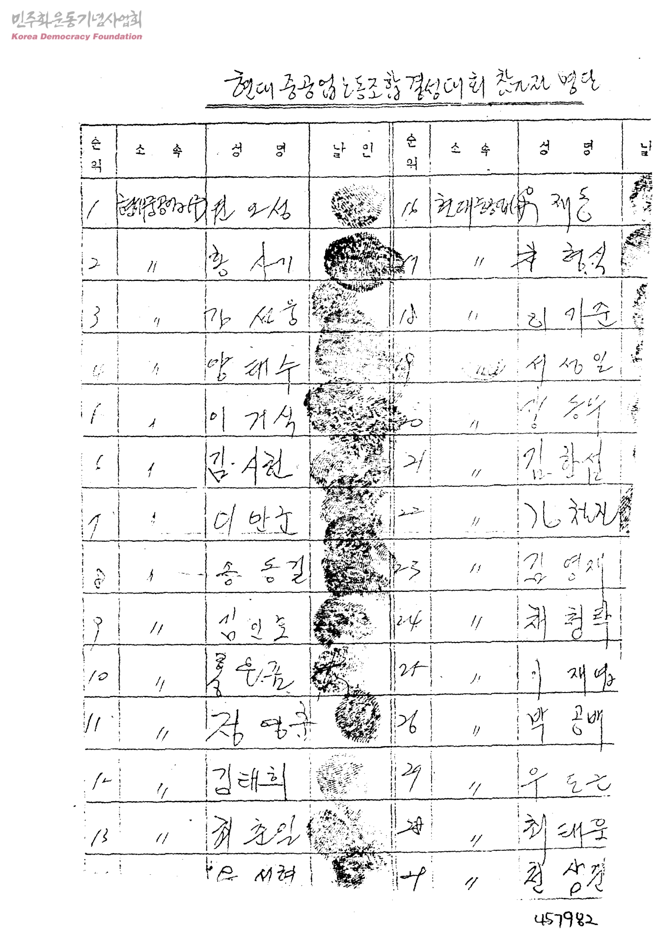 현대중공업노동조합 결성대회 참가자 명단