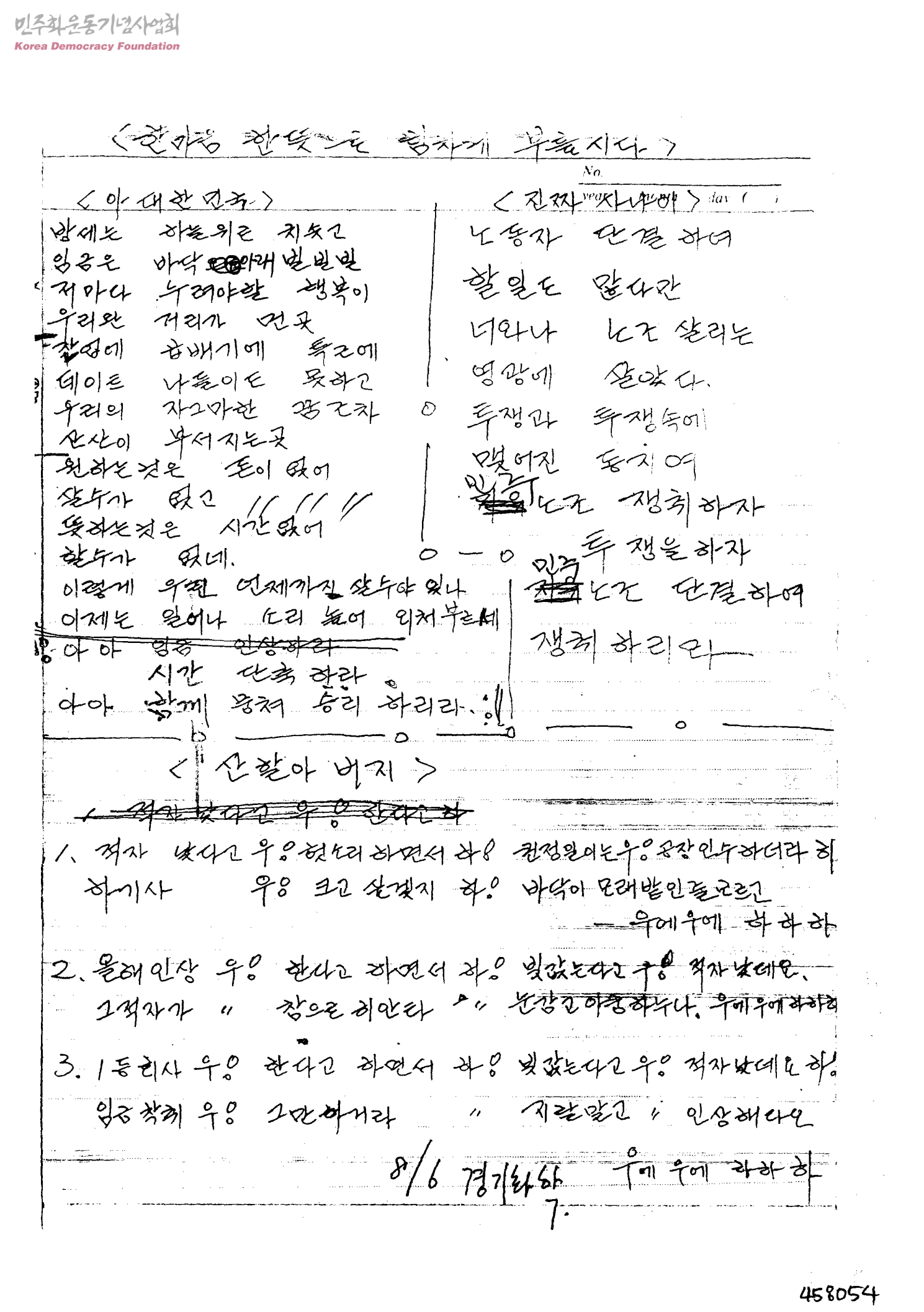 한마음 한뜻으로 힘차게 부릎시다