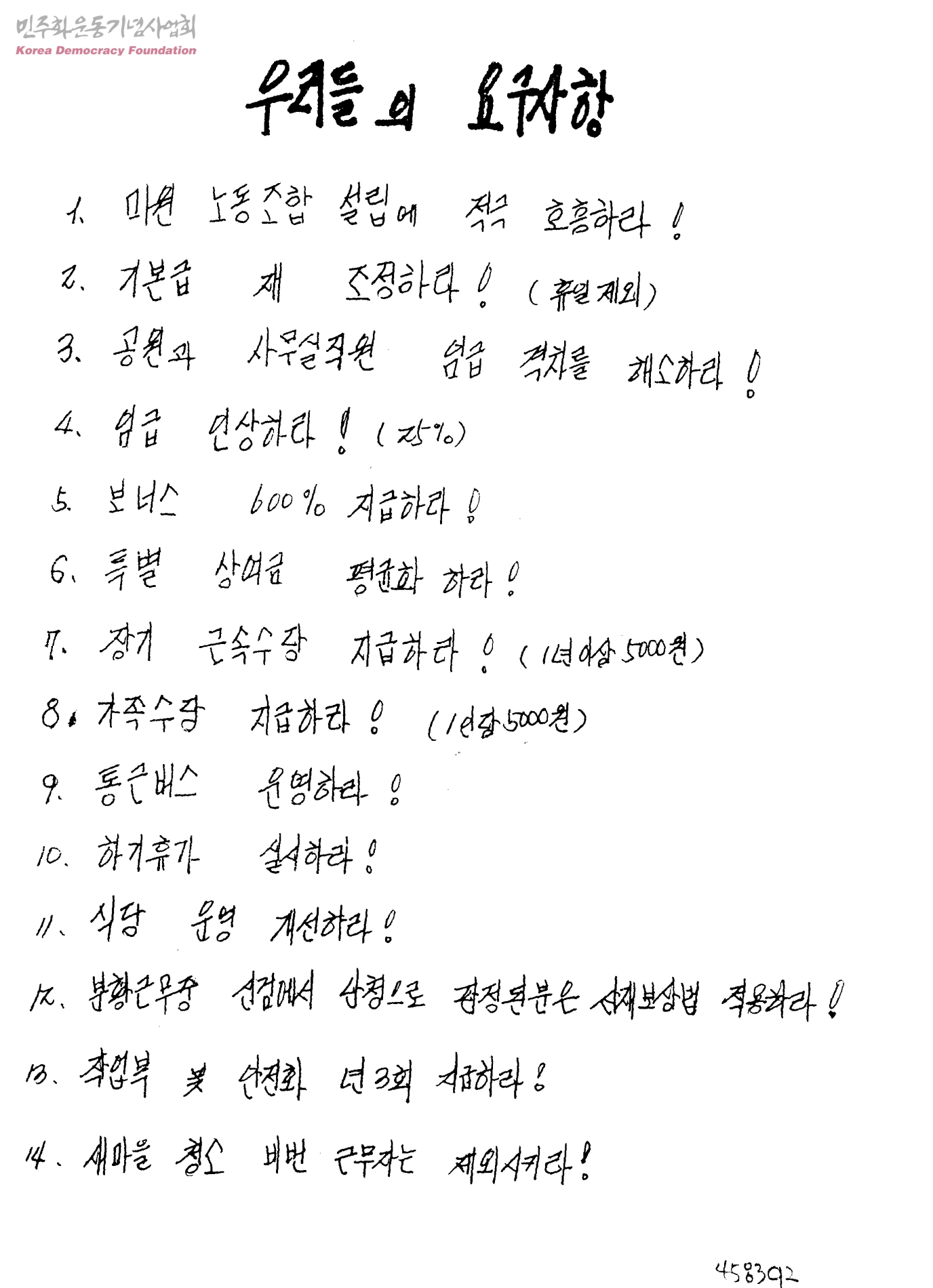 우리들의 요구사항[근로조건 관련]
