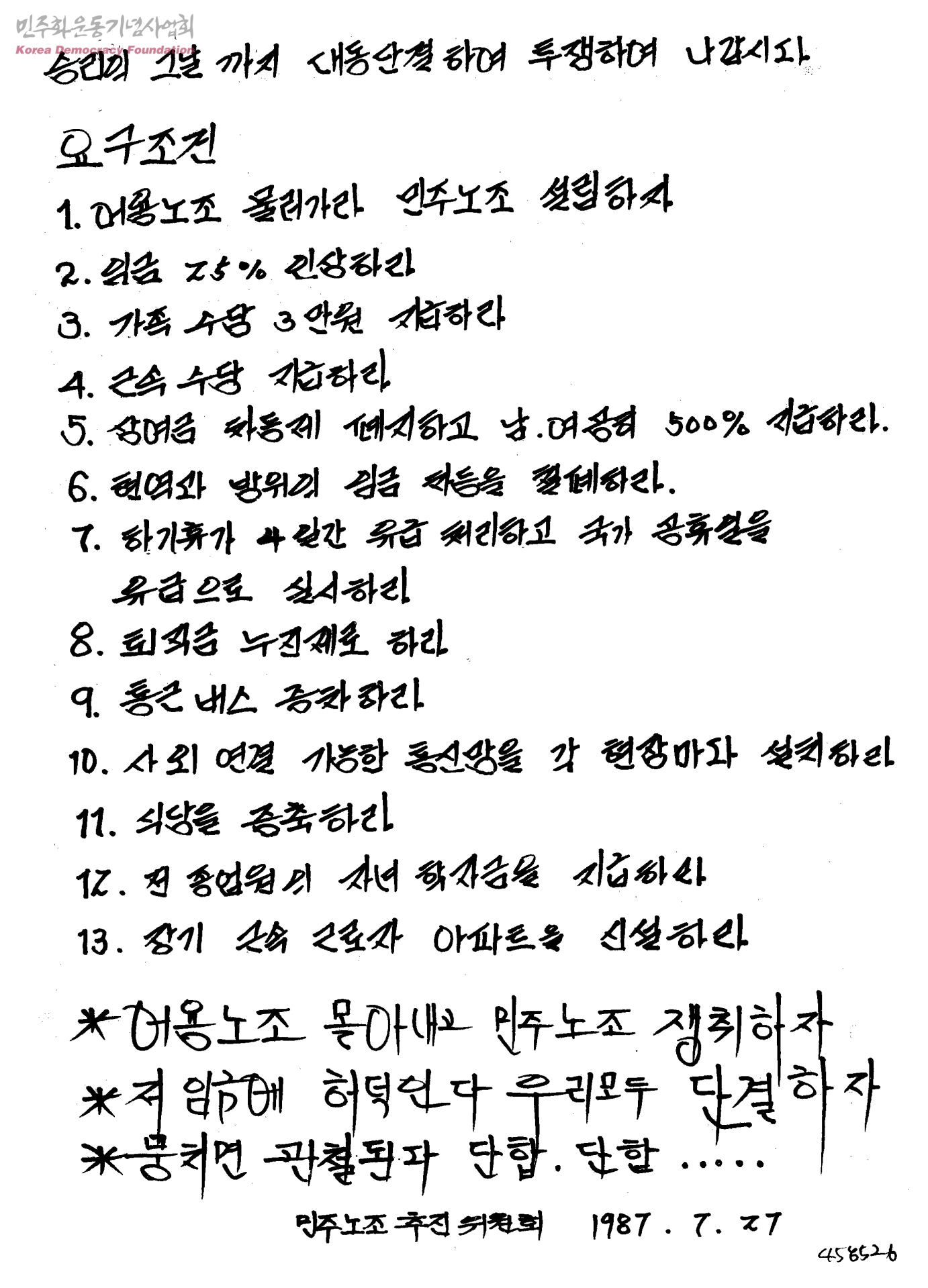 승리의 그날 까지 대동단결하여 투쟁하여 나갑시다