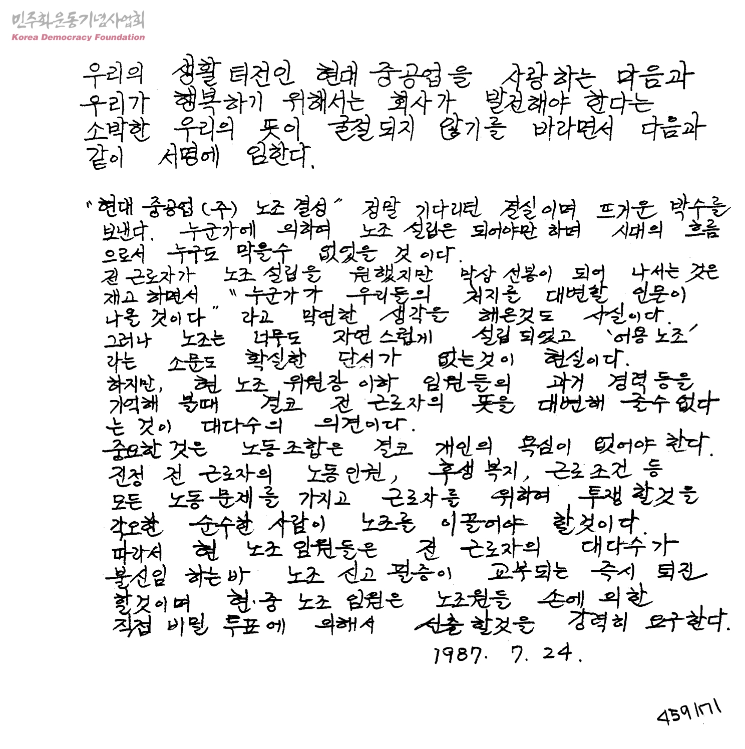 [현대중공업 노조결성관련]