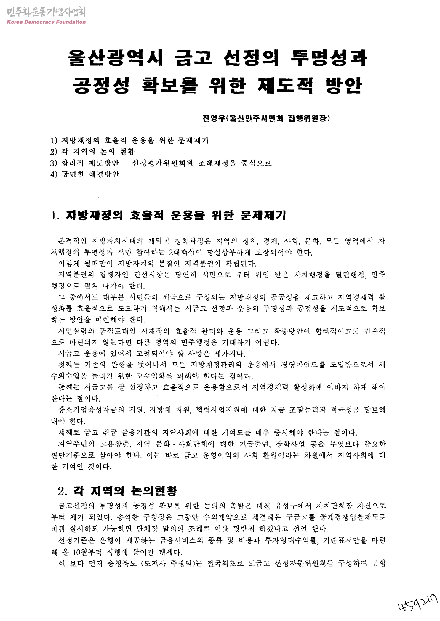 울산광역시 금고 선정의 투명성과 공정성 확보를 위한 제도적 방안