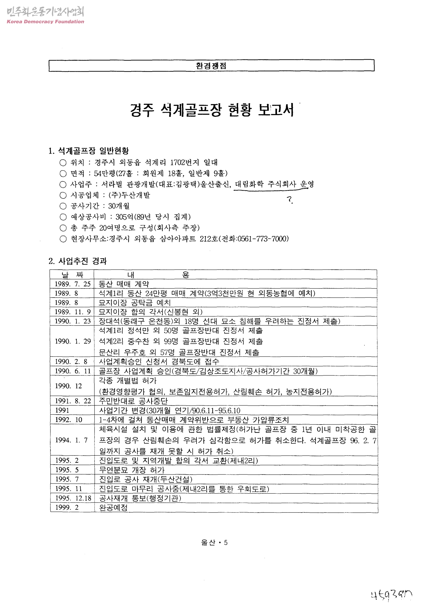 - 경주석계리골프장건설반대대책위원회, 울산환경운동연합