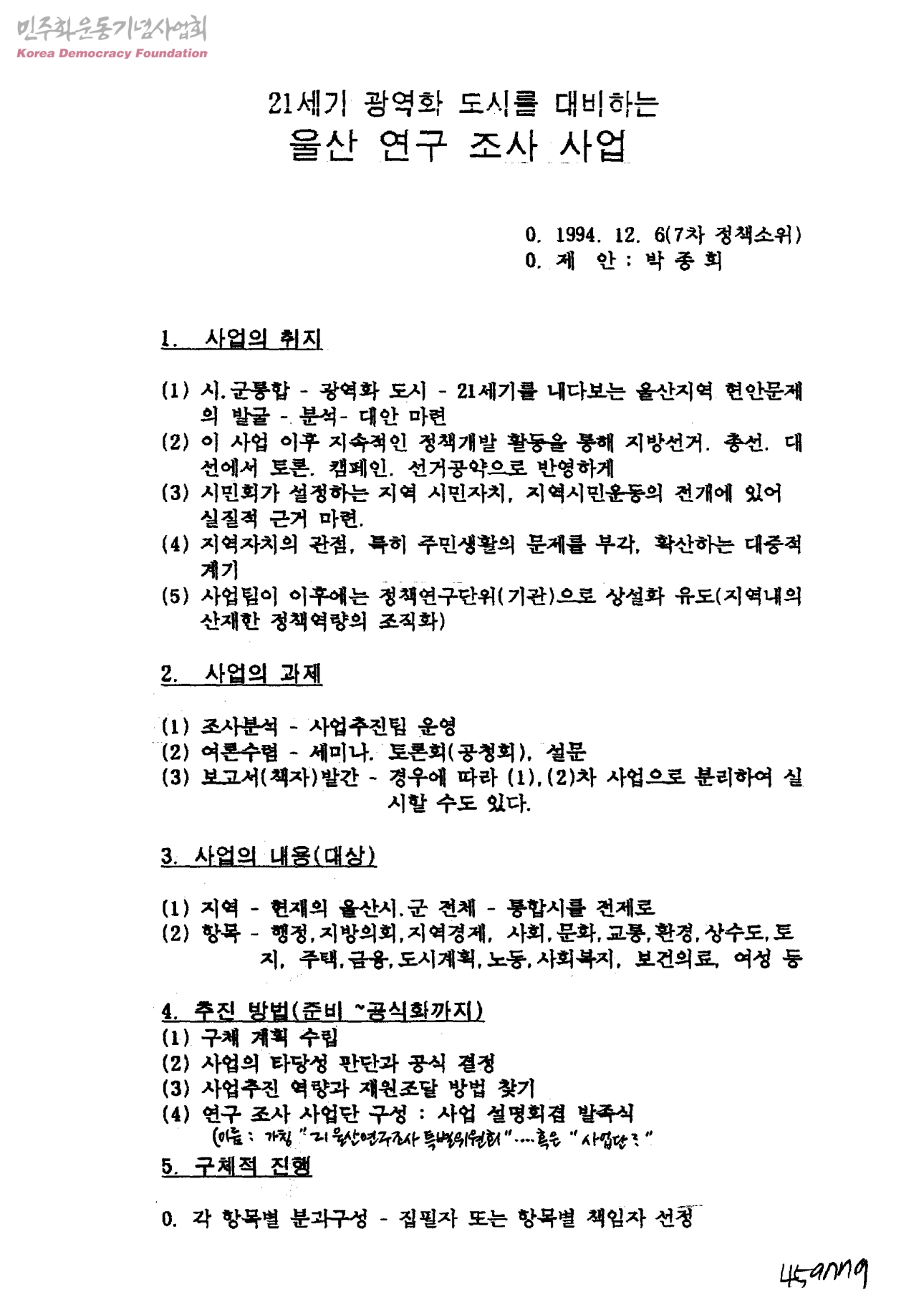 21세기 광역화 도시를 대비하는 울산 연구 조사 사업