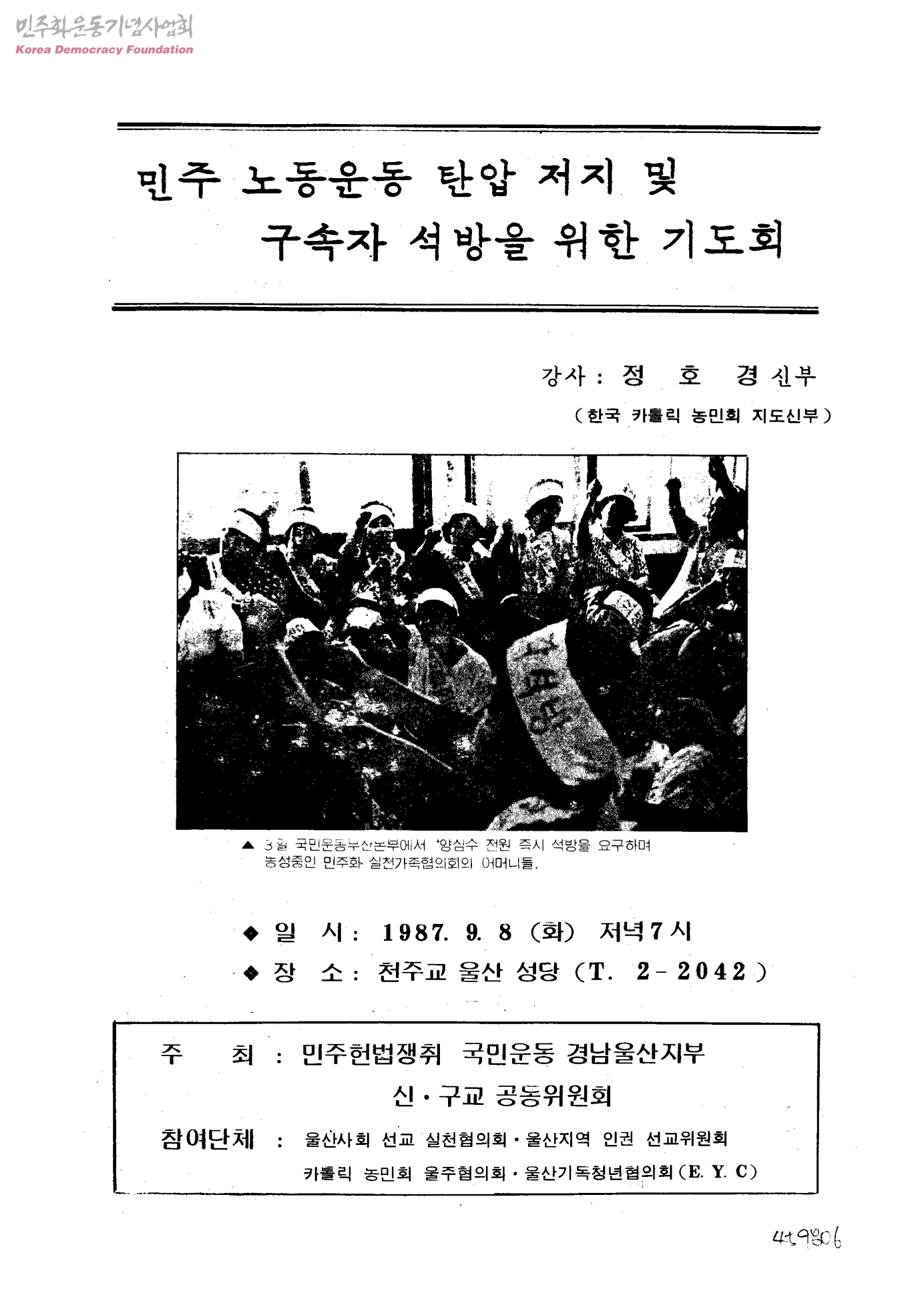 민주 노동운동 탄압 저지 및 구속자 석방을 위한 기도회