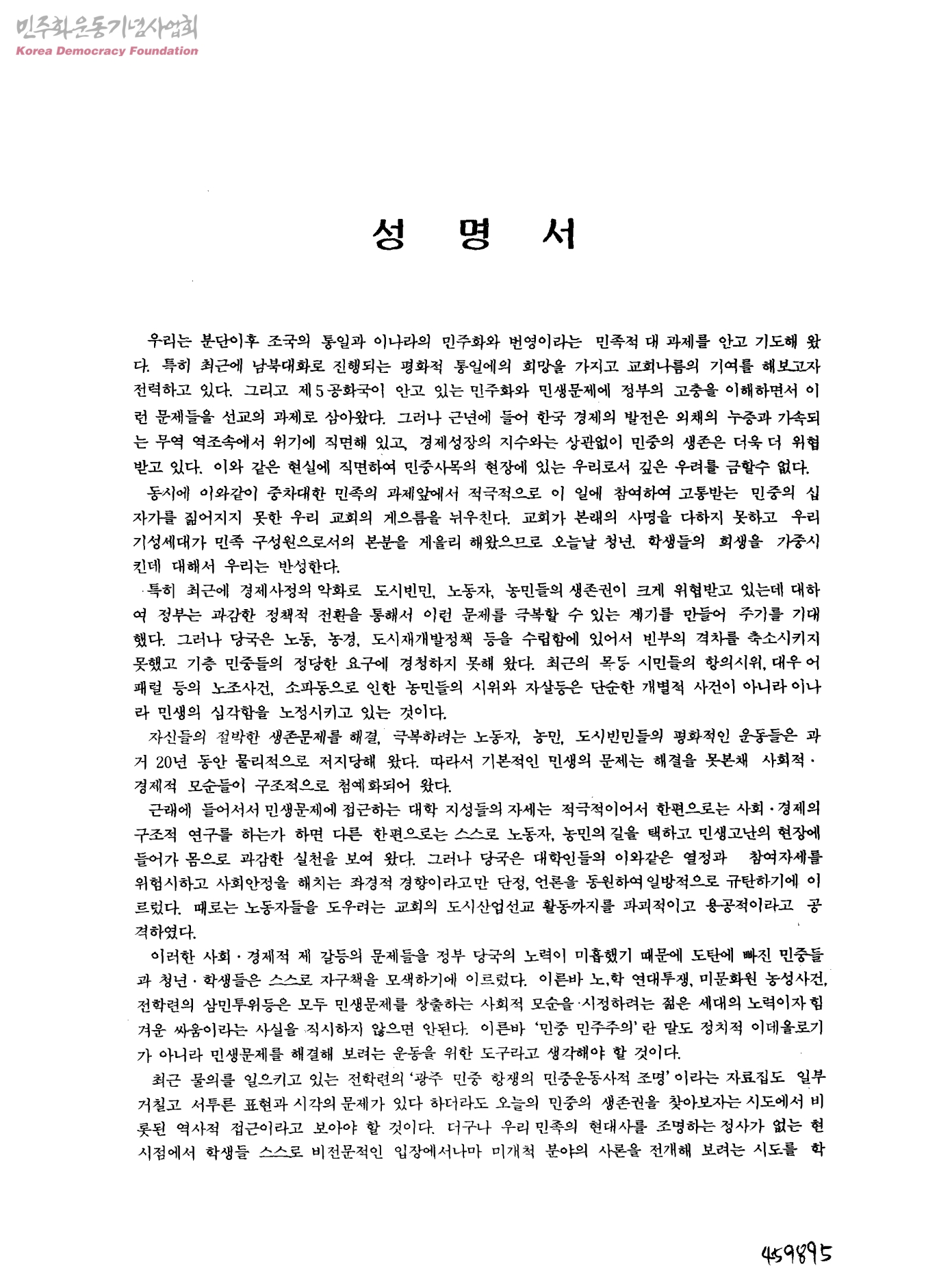 성명서[민중의 생존권 관련]