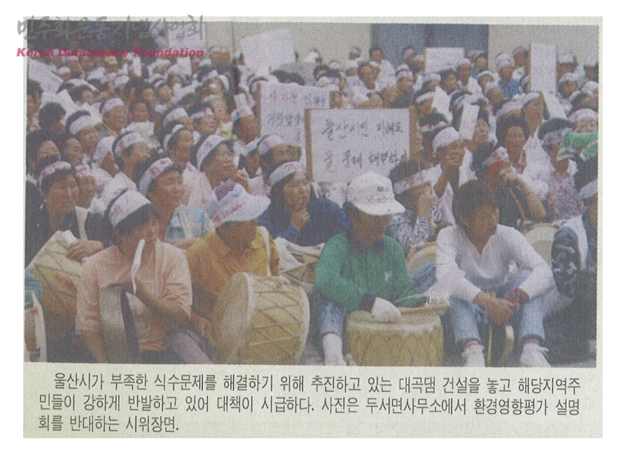[신문스크랩][두서면사무소에서 대곡댐 건설 관련 환경영향평가 설명회를 반대하는 시위장면]