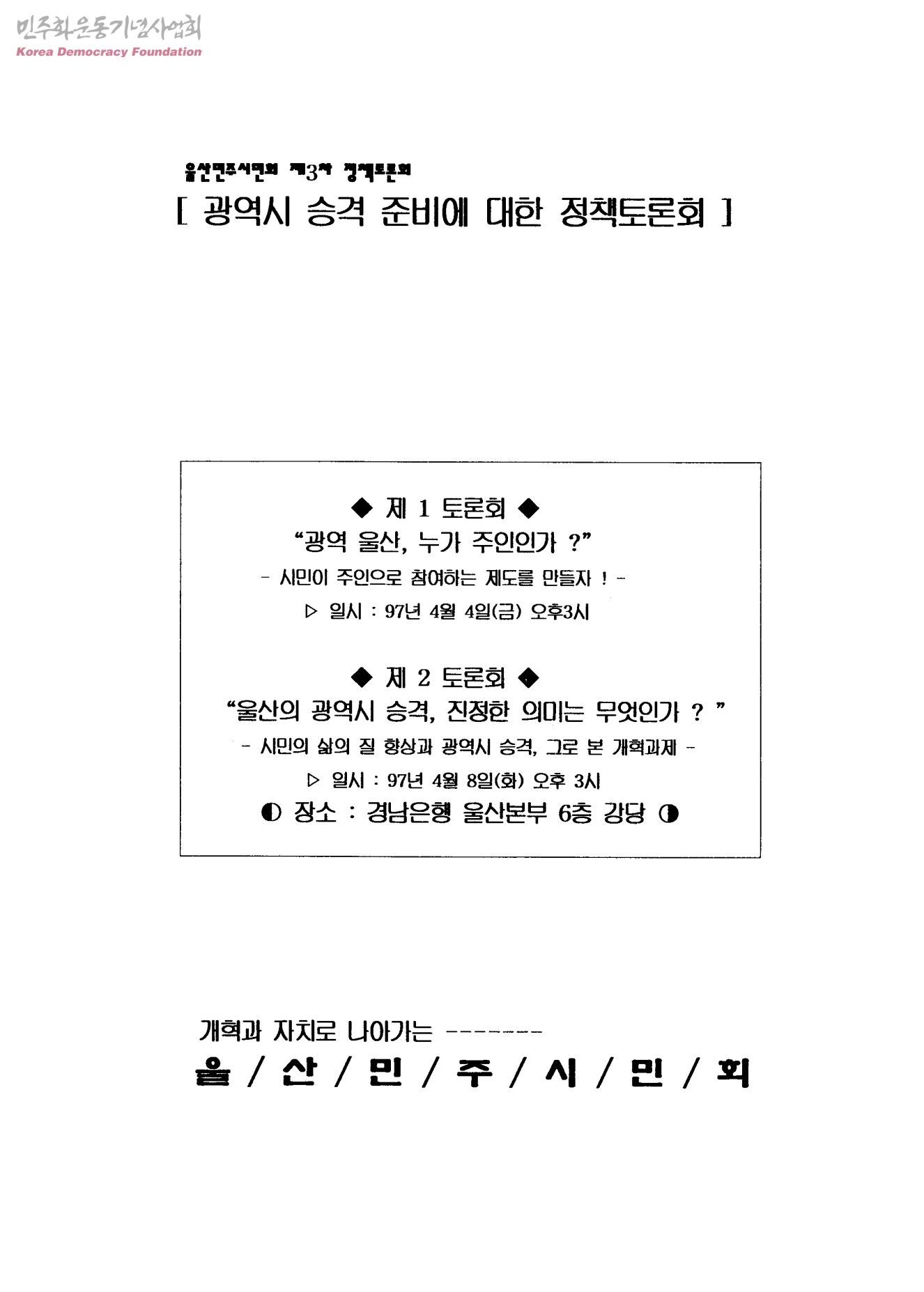 울산민주시민회 제3차 정책토론회-광역시 승격 준비에 대한 정책토론회