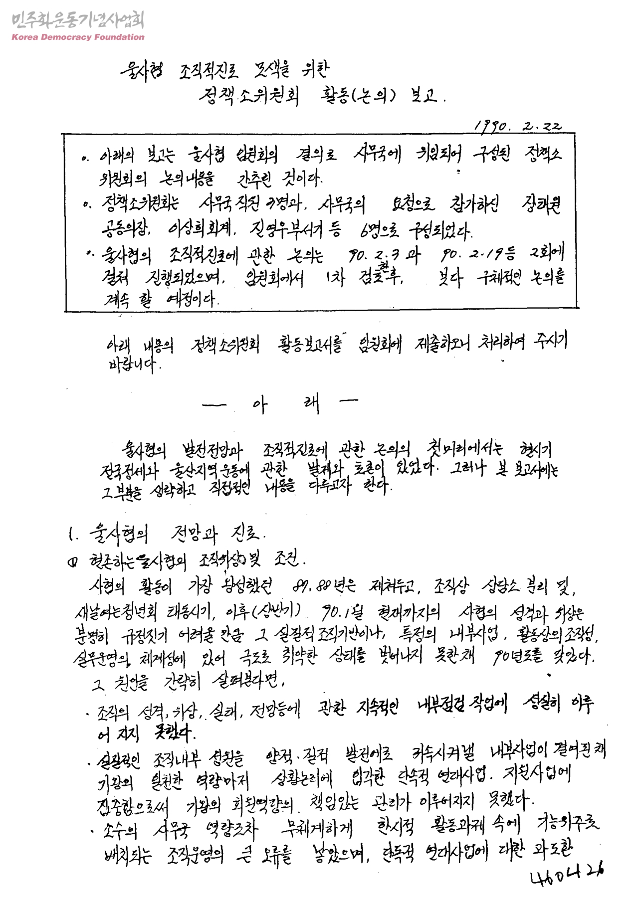 울사협 조직적진로 모색을 위한 정책소위원회 활동(논의)보고