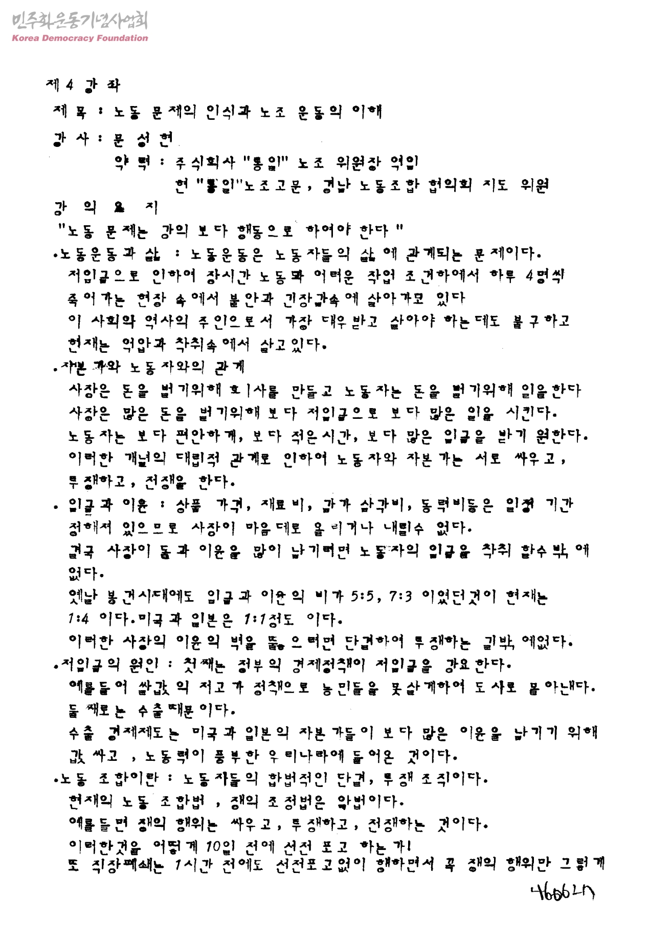 제4강좌- 제목:노동 문제의 인식과 노조 운동의 이해